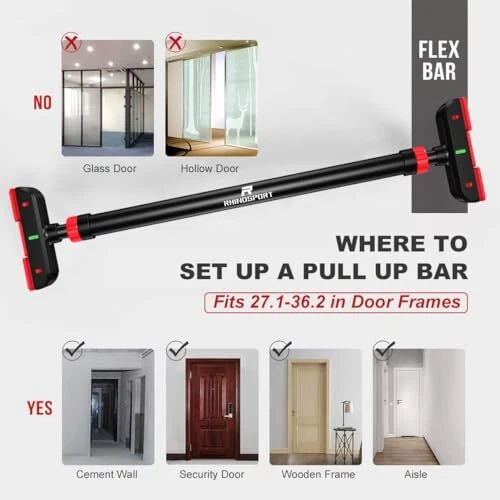 Return Policy Fast Delivery Trusted seller RHINOSPORT Door Pull Up Bar Doorway Chin Up Bar from 69-92 cm (27.1in-36.2in) Workout Equipment for Home Gym Upper Body Workout Non-Slip Product Description 【Upgraded Security - Eject Protection】The two ends of this Rhinosport pull up bar are our original design of the spring automatic extrusion setting. When the gravity presses down, the upper and lower springs automatically squeeze against the wall to achieve a non-slip protection effect 【Firmly Locked】Upgraded triple gear lock design, locking and anti-rotation design to prevent the lever from loosening and rotating. The thickened stainless steel tube prevents the lever from turning during use, ensuring your safety 【NO Marks Left On Doors & High-precision spirit level】Capacity Up To 200kg/440lb. Our pull up bar doorway' installation is not tilted, easy to install and effortless, you don't even need a screwdriver and fits most door frames, and can be assembled and disassembled in seconds. Using soft anti-skid PVC material on each side of the pull-up bar, our bar protects door frames from cracking 【Suitable for Narrow and Wide Grip Training】Full-covered Hand-Grips - The surface of the chin up bar is full covered with high quality EVA foam handle offers additional comfort and minimizes hand fatigue or pain. Effectively avoid calluses and minimize hand fatigue. Provide more choices for hand activity space according to your exercise aim 【Multipurpose Use And Stable】 This Rhinosport chin-up bar is perfect for chin-ups, chin-ups, sit-ups, dips, crunches, triceps dips, leg raises and more ... Make your exercises more scientific and healthier if you are not satisfied with this product , we will refund your money or replace the product with no problem. Please note that you need to measure the size of your own door frame before buying! If you have any questions, please contact us, and we will solve your problems within 24 hours Shipping Returns Payment Shipping Shipping is FREE to all addresses other than APO/PO boxes in the lower 48 states. All our stock ships from US-based warehouses. Shipped via USPS or UPS (depending on location and package weight) Unless stated otherwise, all orders will ship within 24-72 hours of your payment being processed. Check our feedback to see the great reviews of FAST shipping we offer. Returns Seller does not accept returns Payment We currently accept payment via eBay managed payments only. Once payment is cleared, we will dispatch your shipment within 1-3 business days. Please refer to the "Shipping" tab for more information regarding shipping speed to your destination.