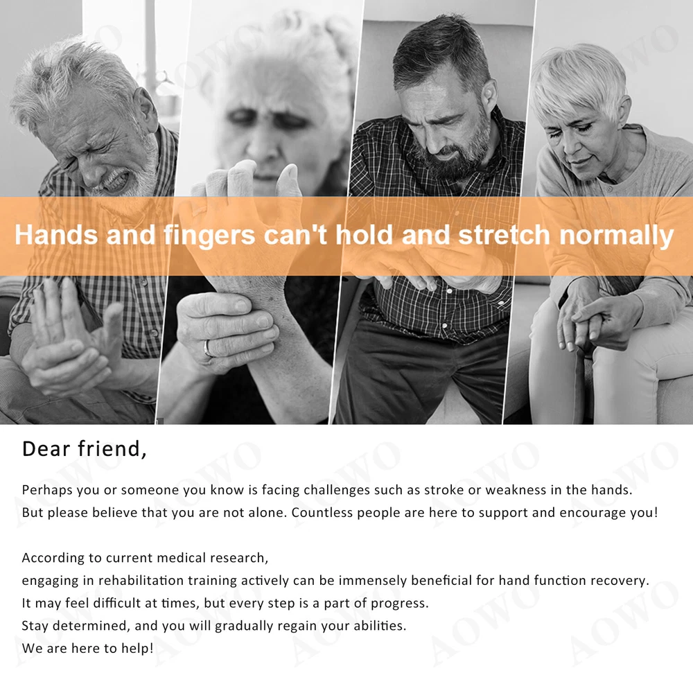Click to play videođđ Feature: ăPortable hand trainer, rejecting ineffective trainingă Stiff hands, training to promote blood circulation and flexibility. Compact size, easy to carry and does not take up much space. Intelligent chip, stable and long-lasting work ăEasy to operate, easy for the elderly to masteră Mirror training, mirror glove for improved efficiency. Adjustable air valve for finger training. Portable belt, easy to carry ăIndependent valve switchă Train any finger to flex and extend freely with the independent switch. Turn the valve knob 90° horizontally to close the valve and open it vertically. Mirror mode for brain function remodelling. Mirror glove with synchronised movements. ăStretching movements, with hands open, train your hands. Opening movements can be executed in sync.ă Bending position grasps, tightly mimics your hand and trains your hand. Can perform fist movements in sync. Easy to operate, one button start, you can start training with five fingers, single fingers, opposite fingers, multiple fingers, mirror image, etc. Portable belt for your on-the-go needs ăUSB for easy charging and uninterrupted power supplyă Powerful power,five-speed frequency control,powerful air pump to ensure continuous output and stable operation with sufficient power ăFine stitching,joint opening,easy finger bendingă Flexible pneumatic tube, upgraded toughness, flexible and more comfortable. Velcro straps, super elastic, adjusts and fits both hands Mirror gloves, mirror training, easy to use. Individual pneumatic valves, each finger can be targeted for training Effect : Rehabilitation Robot Glove has a significant effect on hand dysfunction caused by the following symptoms: 1. stroke/cerebral hemorrhage/cerebral infarction 2. incomplete spinal cord injury 3. brain injury,hemiplegia 4. multiple sclerosis Package include: 1 x Hand Mirror Training Rehabilitation Robot Gloves (Left or right: your choice) How to use: 1. Glove interface connected to the host. 2. Fingers in turn wear to the end. 3. Fix the Velcro. 4. Fix the number of straps as needed. 5. Turn on the machine can be used. FA&Q: How long is it appropriate to use each time? The single use time should not be too long, it is recommended to control within 20 minutes. How to set the training intensity? Different users have different muscle physiological conditions and different levels of rehab and exercise, so different muscle tone levels correspond to different recommended levels, see the manual for details. What is the target group? Stroke patients, cerebral hemorrhage patients, children with hand burns, cerebral palsy-induced hand disorders, young and middle-aged people and the elderly. What are the contraindications to the use of the hand function rehabilitation training device? Before training, please confirm that the hand to be trained is not stiff, if it is stiff, please massage and warm the hand first, and wait for the hand to reach a soft state before training; please do not give it to people without behavioral awareness or young children to use it alone; such as hand sprains, traumas, bone injuries of unknown condition, people with severe osteoporosis, people with untreated fractures or those who need to brake after treatment Do not use this product without professional confirmation of availability. On Jan 6, 2025 at 19:13:29 PST, seller added the following information: