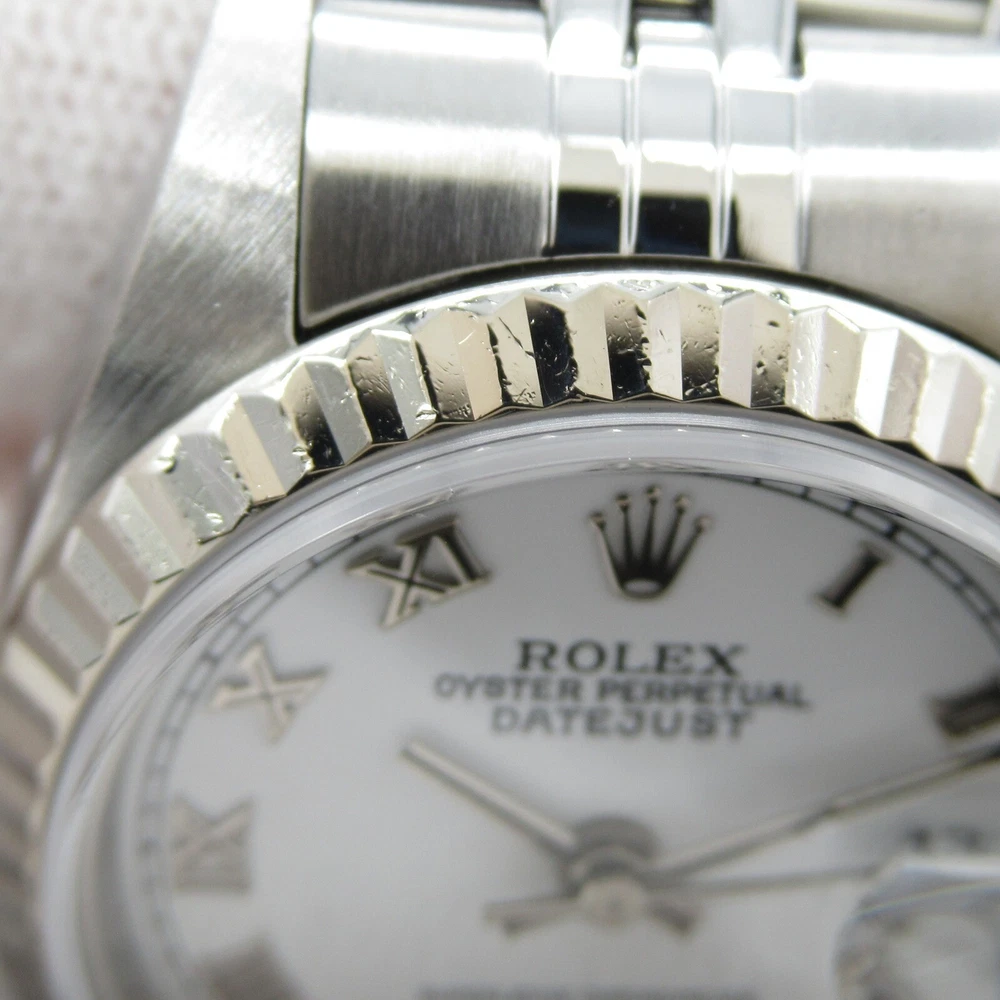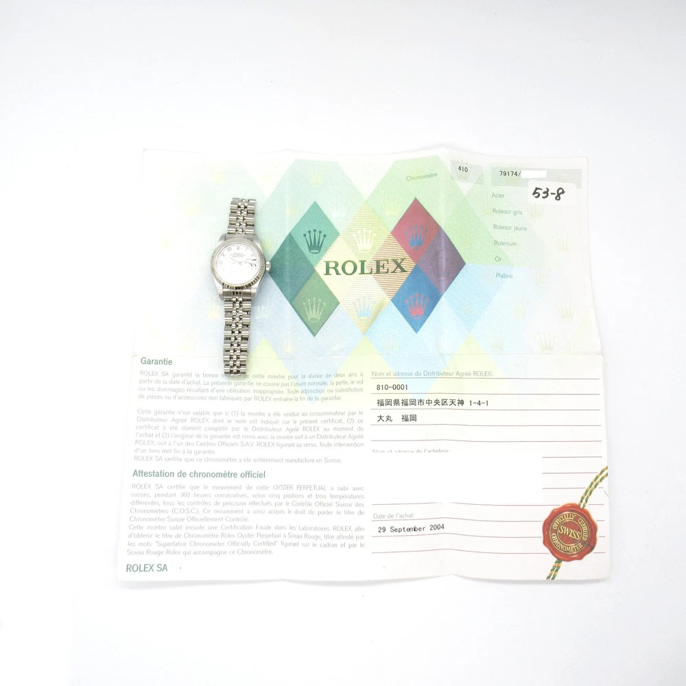 ROLEX Datejust F Wrist Watch 79174 Auto 18KWG Stainless Steel Used Women Description / Specification Brand Name ROLEX Item Name ROLEX Datejust F Wrist Watch 79174 Auto 18KWG Stainless Steel Used Women Model No. 79174 Color White‐ish colors × WH/RO‐ish colors Material K18WG(White Gold) × Stainless Steel Size Band Width:about 10-12mm Accessories Guarantee/ Accessories not stated are not included. (If there is no mention of a box or dust bag, they are not included either.) Type For Ladies Movement Automatic winding Features Date display Waterproof Waterproof 100M Case Diameter 26mm Case diameter(1.0" Case diameter)Without crown Wrist Size(Approx) 〜16cm(-6.3") Model Year F number 2004 model Remarks In the case of the watches that the material of belt made of Crocodile and Ostrich as restricted by the Washington Convention, we ship only the case of the watch and buckle, buckle tongue by removing the belt.It would be great if you would understand this. Instore Code 2101218179293 Up Date 2024/09/26 Condition Pre-owned used Wrist Watch by ROLEX in good condition . Outside Condition There is some usability, scratches, rubbing, and stain. There are some signs of wear. *This product has been polished, but there may be small scratches that cannot be removed. Thank you for your understanding. Please take a look at the descriptions and the pictures above to check the condition of the item before the purchase. Rank Pristine New, Not used. Excellent Excellent, Allmost as good as new. Very Good A slightly used. Good There are a few scratches, stains and looks a little used. Fair + There are some noticeable scratches and stains. Looks used. Fair There are some noticeable scratches and stains. Looks obviously used. Poor + There are many scratches and stains. Looks very used. Poor Looks very used, but still usable. About Authenticity We have a large selection of luxury brand products We guarantee that all of the items we list and sell are authentic. Feel free to contact us if you have any inquiries or concerns. We are approved seller from Tokyo Metropolitan Police License No : 301061906960(Used Item Seller ) In addition, We also are a member of the Association Against Counterfeit Product Distribution (AACD), and we promise to have no bogus under any circumstances. Please read before order Shipment cannot be marked as a 'gift' or with altered price due to the custom declaration laws. Import duties, taxes, or other additional fees will be charged by your local customs. We are not responsible for any customs and taxes applied to your order. All fees imposed during or after shipping are the responsibilities of the customer (tariffs, taxes, etc.). Please inquire the details of import duties or taxes at the customs office in your country directly before making an order. Payment & Shipping Payment We only accept payments via Managed Payments. Shipping All items will be shipped from Japan. We can only make shipment to the registered address with your ebay account. All orders are processed within 3-5 business days. Orders are not shipped on weekends or holidays. 1.Shipments will be made by DHL. 2.For orders which are not able to be shipped by DHL, they will be shipped by Fedex or UPS. 3.Orders for China will be shipped via EMS of the Japan Post. 4.We currently suspend shipping services to APO/FPO, Brazil, Chile, Indonesia, Mexico, Peru, Philippines, Russian Federation, and Ukraine. Delivery time 1.Delivery usually takes approximately 3-10 business days 2. Shipments might be delayed due to the following reasons: a)Bad weathers b)Public holidays c)Delay at the customs office Returns/Cancellation Policies As we selling our items on other websites and in our retail stores in Japan at the same time, if the item was sold out before your purchase, your order will be cancelled with a full refund Customers are allowed to return the item within 30 days from the delivery or pick up date for a full refund. Items without the security tag are not allowed to be returned. All fees imposed during the return shipping are the responsibilities of the customer Please contact us before starting a return Please provide us the tracking number once return shipment is made. If the mistake caused by human error is occer, please forgive me for cancelling by us. See more Policies & Description
