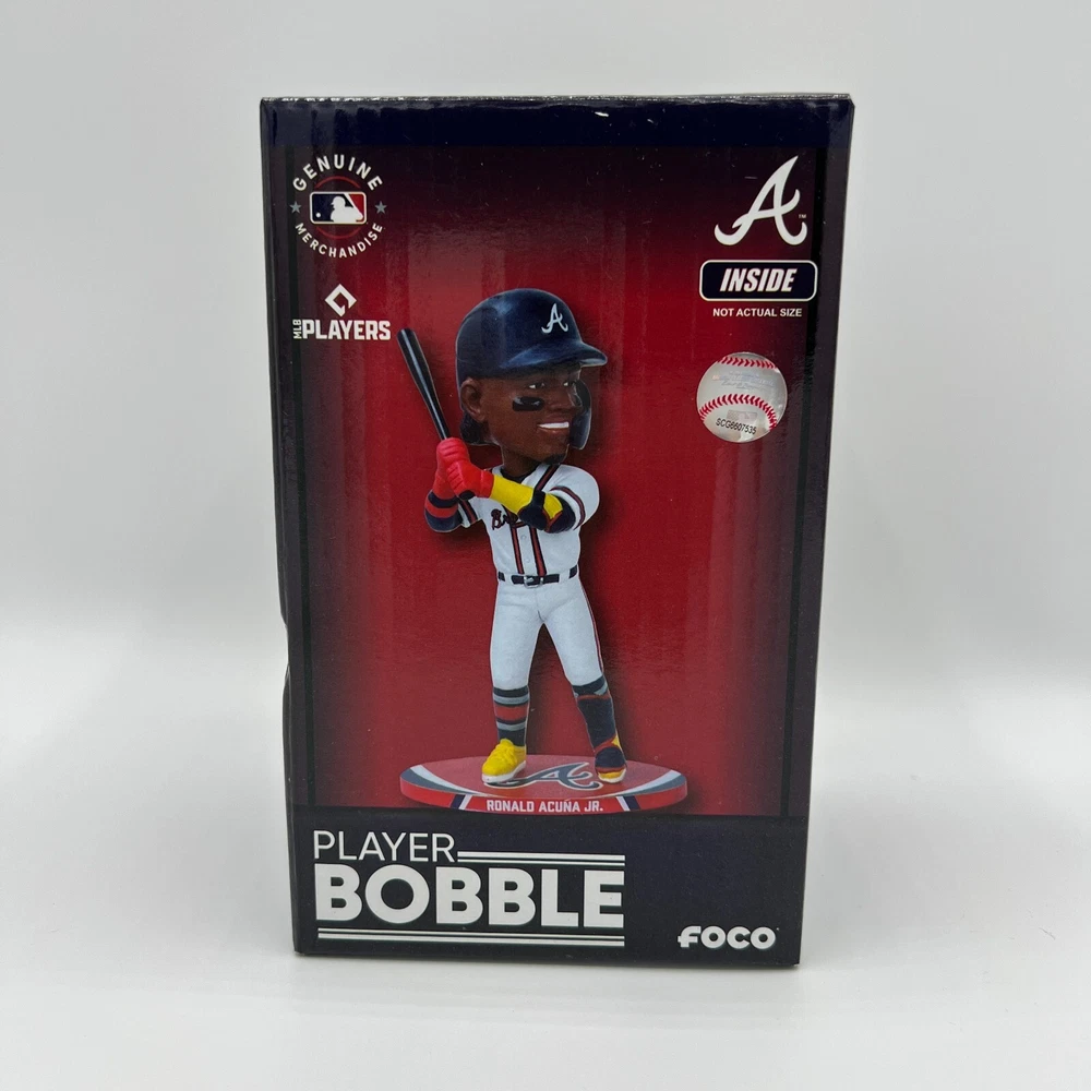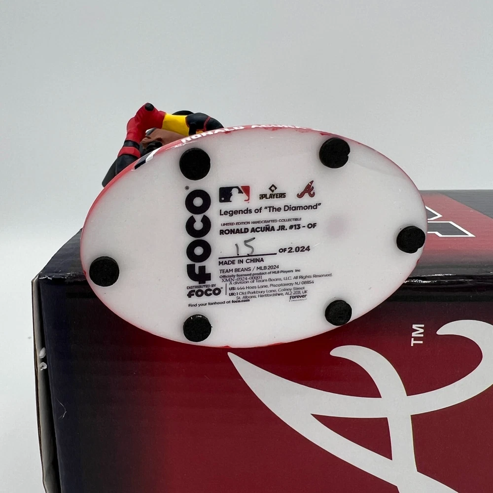 Country/Region of Manufacture: Jersey Product: Bobblehead gtin13: 196816824050 Color: White Size: 5" UPC: 196816824050 Team: Atlanta Braves Brand: FOCO Player: RONALD ACUNA JR Officially Licensed: Yes Sport: Baseball-MLB