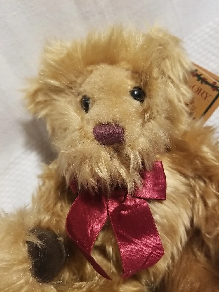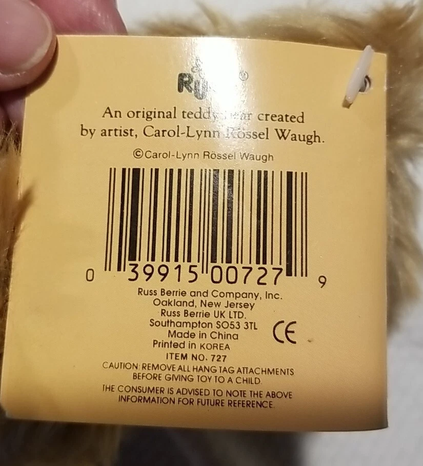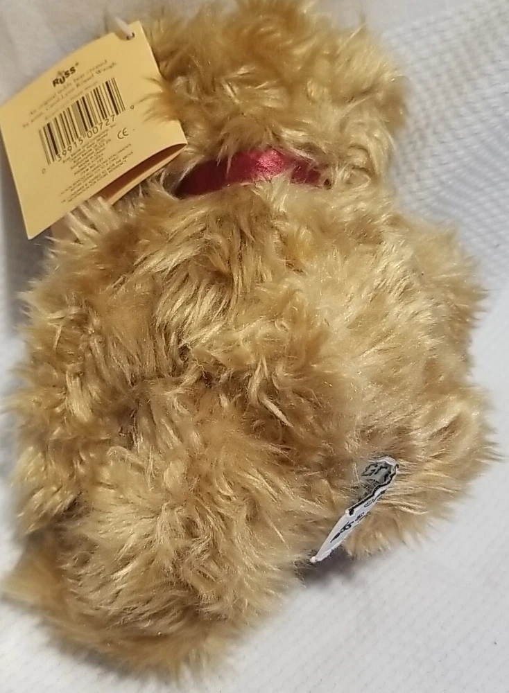 This adorable 9-inch plush bear is a perfect addition to any collection. With its soft and cuddly material, it is sure to bring comfort to all ages. The bear features a charming brown bow and brown eyes, with a vintage and retired design that makes it unique. Ideal for all occasions, this Russ Berrie bear is a great gift for anyone who loves animals or bears. It comes from an unknown year of manufacture and country of origin, but its quality and originality are undeniable. Add this plush bear to your collection today and enjoy the special features it brings. Good condition