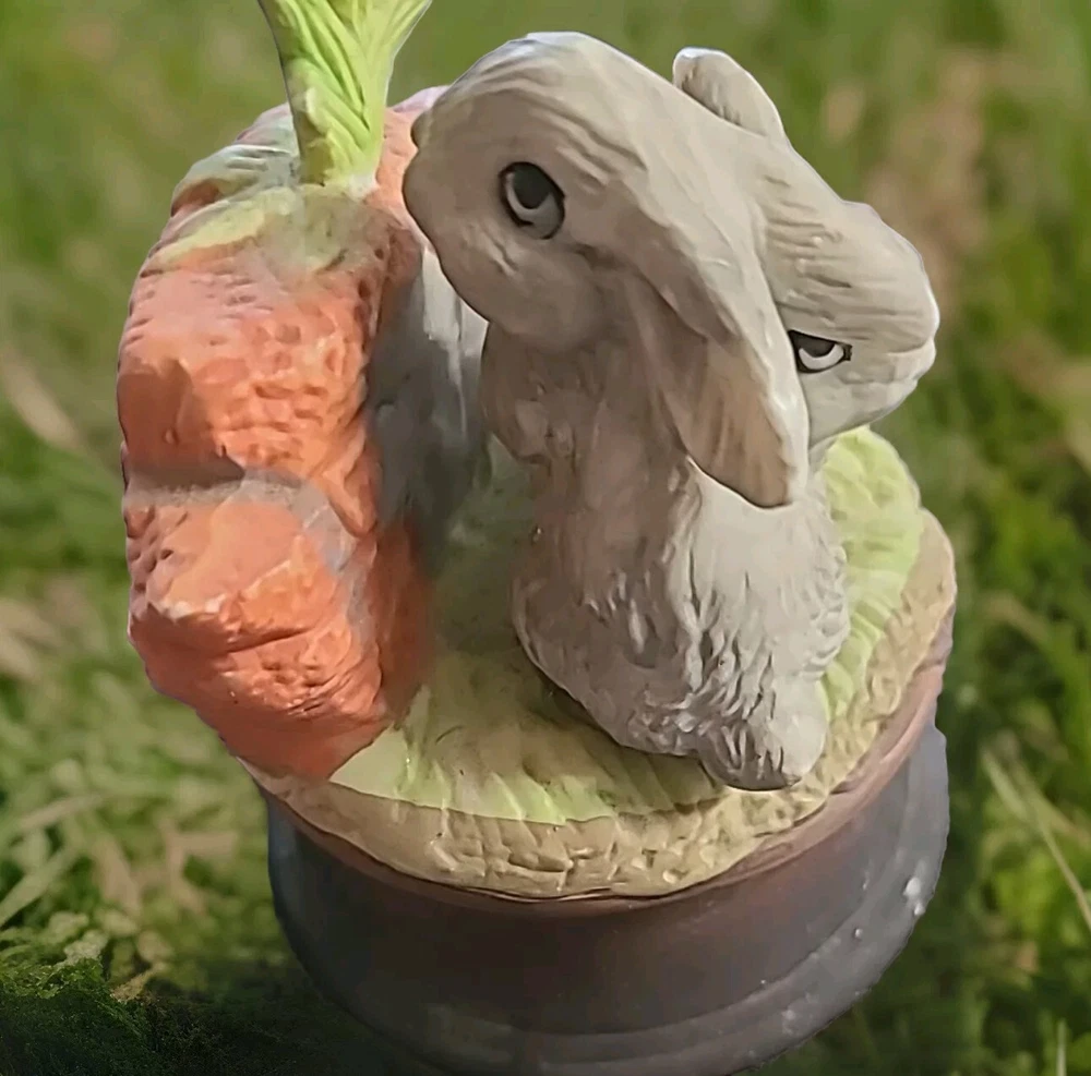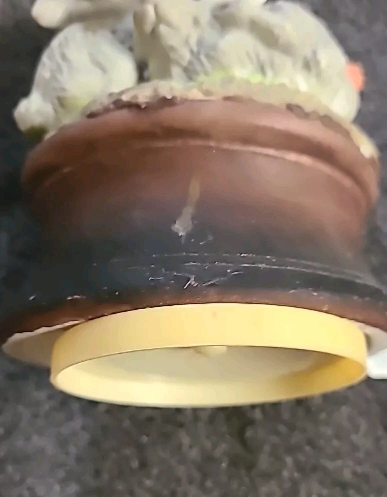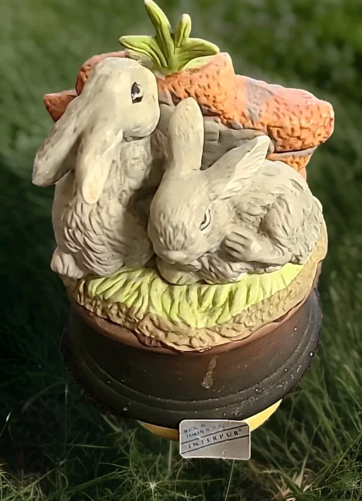 Sold as is. This vintage Interpur music box is a charming addition to any collection. The ceramic design features adorable bunnies feeding and a revolving mechanism that adds a touch of whimsy. Made in Taiwan, this pre-1900 piece is a must-have for collectors of vintage music boxes. The brand is Interpur and the type is a music box. It is a decorative collectible and is not modified.