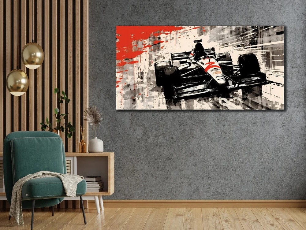 Racing Car Art B&W Red Abstract Sport Unframed Canvas Print Australian Wall Art
