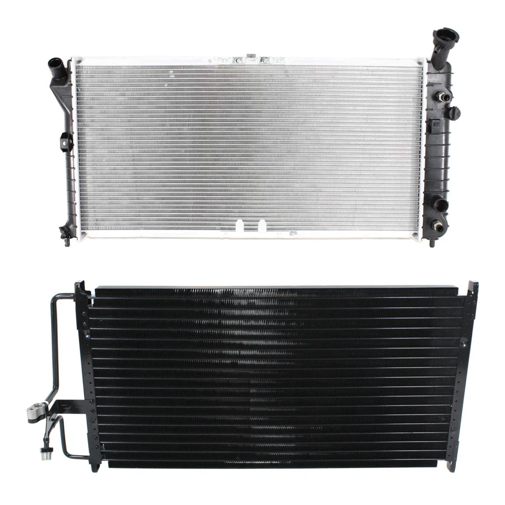 Evan Fischer Auto Parts Ebay Store Radiators for Chevy Olds Pontiac Grand Prix Chevrolet Venture Silhouette Montana Description Terms of Use | Warranty Coverage Policy Replacement Radiator KIT-090123-126 REPLACEMENT RADIATORS Replacement radiators help your engine keep its cool, even under the most strenuous driving conditions. Innovative design traits, such as louvered core fins that accelerate heat transfer, help Replacement radiators deliver exceptional performance. At the same time, each radiator is built to factory specifications for a hassle-free installation. Features & Benefits: Perfect Fit, Easy Installation Replacement brand radiators are designed to be an exact match for yourvehicle’sfactory radiator. A perfect fit allows for a hassle-free installation. Louvered Core Fins For Increased Airflow Louvered core fins increase airflow and accelerate heat transferto keep your engine running cool. Aluminum Core and Durable Plastic Tank An aluminum core and durable plastic tank prevent rust and corrosion while also limiting weight and promoting longevity. Brand New in the Box - Fit and Quality Guaranteed! Core Material Aluminum Core Core Dimensions 30.57 x 15.06 x 0.63 in. Core Size Inlet Location Top left inlet Inlet Size 1.31 in. Inlet Outlet Location Bottom right outlet Outlet Size 1.31 in. Outlet Automatic Transmission Cooler With Transmission Cooler Engine Oil Cooler Without Engine Oil Cooler Anticipated Ship Out Time Same day - 1 business day Quantity Sold Kit Product Fit Direct Fit Replaces OE Number 52485608, 52411111 Number of Rows 1-Row Core Color/Finish Factory Finish Recommended Use OE Replacement Replaces Partslink Number GM3010102, GM3030101 Tank Material Plastic Tank Replaces DPI Number DPI# 1889 Core Height 30 1/2 in. Core Width 15 in. Core Thickness 5/8 in. Interchange Part Number CU1889, 52485608, GM3010102, 74806, 52411111, GM3030101 Prop 65 Warning WARNING: This product can expose you to chemicals including Lead and lead compounds, which is known to the State of California to cause cancer and birth defects or other reproductive harm. For more information go to www.P65Warnings.ca.gov. For Online Marketplace For Online Marketplace Returns Policy 30-Day Return Policy Components (1) A/C Condenser and (1) Radiator Compatible with the following vehicles: Buick 97-99 Century (submodel: Custom, Limited) For Models With Standard Duty Cooling 98 Regal 25th Anniversary Edition Non-Supercharged 97-99 Regal (submodel: GS, LS) Non-Supercharged Chevrolet 2000 Venture (submodel: LT, Plus, Value, Warner Bros.) For Models With Standard Duty Cooling 97-2000 Venture (submodel: Base, LS) For Models With Standard Duty Cooling Oldsmobile 98 Intrigue Base For Models With Standard Duty Cooling 99 Intrigue GX For Models With Standard Duty Cooling 98-99 Intrigue (submodel: GL, GLS) For Models With Standard Duty Cooling 97 Silhouette Base For Models With Standard Duty Cooling 98-99 Silhouette GS For Models With Standard Duty Cooling 98-2000 Silhouette Premiere For Models With Standard Duty Cooling 97-2000 Silhouette (submodel: GL, GLS) For Models With Standard Duty Cooling Pontiac 97-2002 Grand Prix SE For Models With Standard Duty Cooling 97-2002 Grand Prix SE Non-Supercharged 97-2003 Grand Prix (submodel: GT, GTP) Non-Supercharged 99-2000 Montana Base For Models With Standard Duty Cooling 97-99 Trans Sport Base For Models With Standard Duty Cooling 98 Trans Sport Montana For Models With Standard Duty Cooling