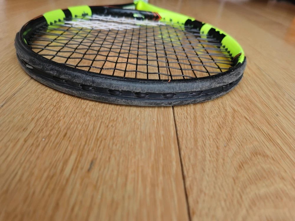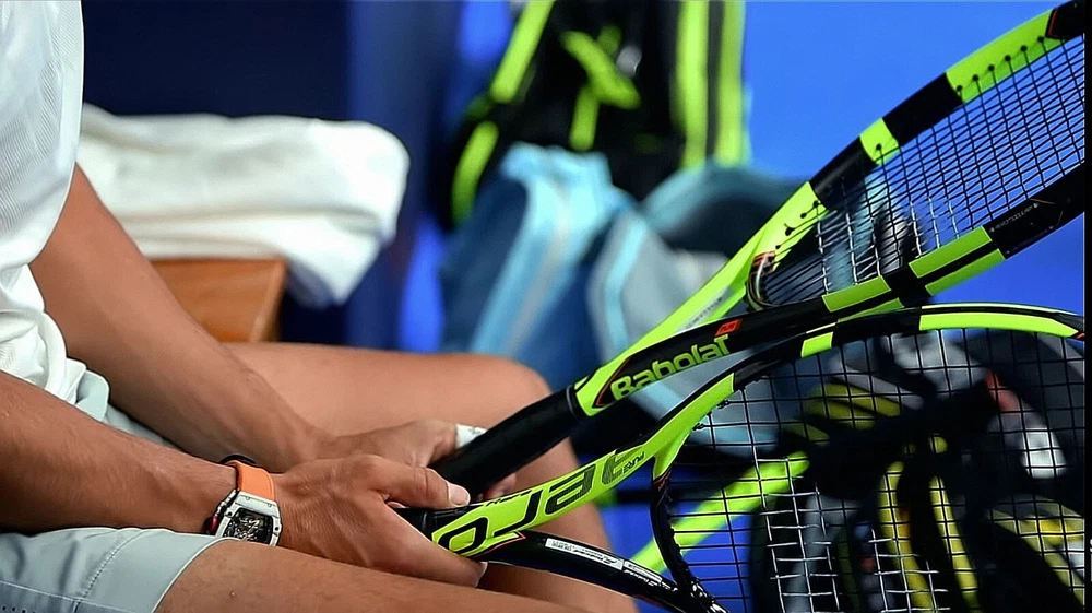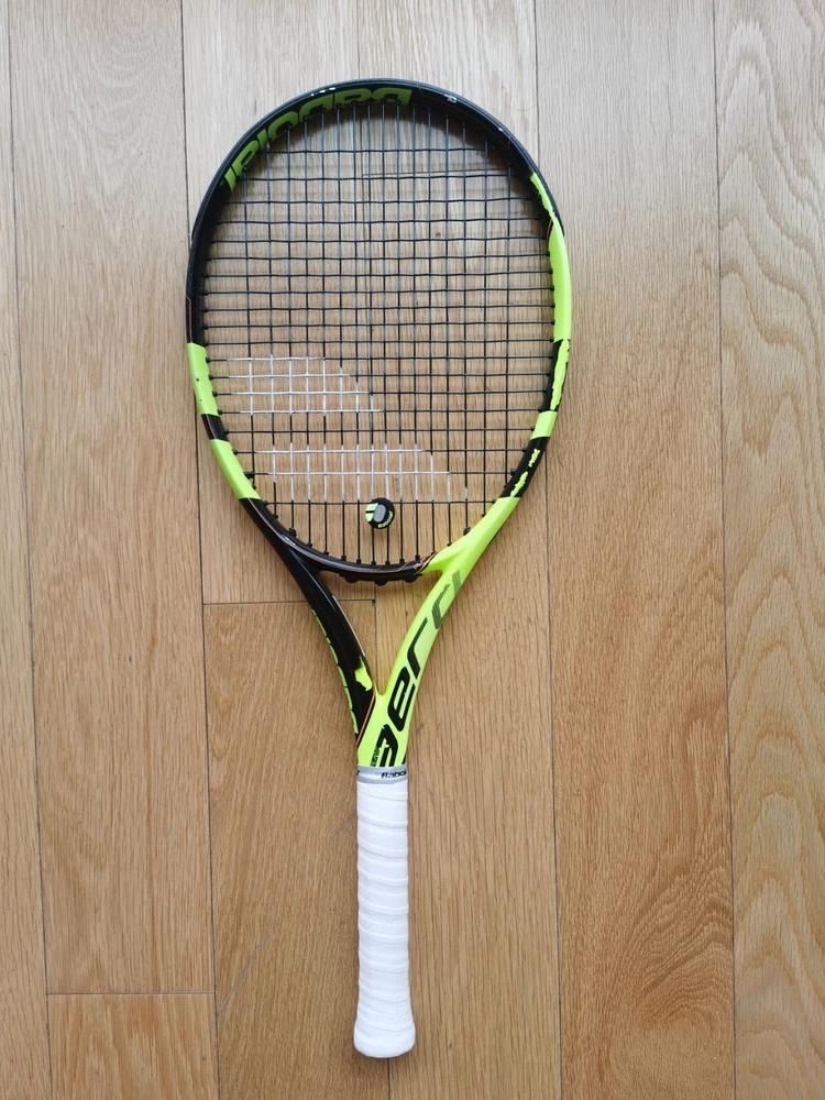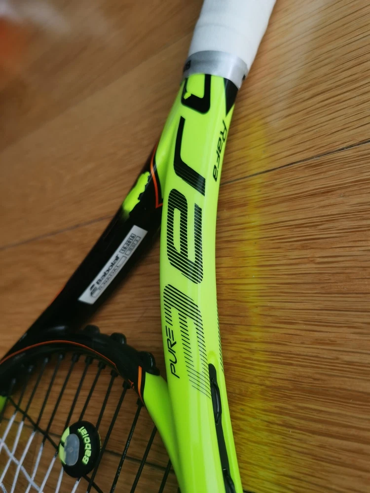 Rafael Nadal Personal Practice Used Babolat AeroPro Drive Tennis Racket This is a AeroPro Drive Pro Stock Racket that Babolat customized for Rafael Nadal in 2015. The racket has a Pure Aero Play paint job. However as you can tell from the grommet and string pattern, it is an AeroPro Drive Original (without cortex) which is the mold Nadal has actually been using throughout his career. This was one of the actual rackets Rafael Nadal play tested in a 2015 practice with Babolat team. Search for “The new Babolat Pure Aero: creating the 6th Generation” on Youtube for a video of this event. The racket featured a special glossy finish. The racket has Rafa’s name painted on it as well as a Babolat customization label. The racket feels very head heavy due to customization. Shipping via USPS Priority Mail. Shipping to US only.