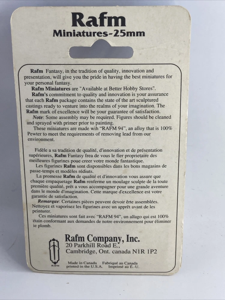 Rafm Miniatures - Fantasy - #3863 Brunhilda Includes 1 miniature Package in excellent condition Out of print vintage detailed miniature Great addition to any Undead Vampire Chaos Monster army / diorama / collection Add this model to your next campaign Buying multiple Items reduces the cost of shipping per Miniature Combined shipping available when purchasing multiple items *(applies only to auctions ending the same day, please contact me for any exceptions) *(combined shipping invoice sent no later than 24hrs after auction completion) *Please wait for a combined shipping invoice, it will allow for shipping costs to be more accurate Shipments typically on Tuesday and Friday after payment If Items are not paid for withing 5 days of purchase items will be relisted Warhammer fantasy, AD&D, D&D, diorama, war game, lead figure, Vintage, sealed blister pack, collectable, age of Sigmar, fantasy roleplaying, Lord of the Rings