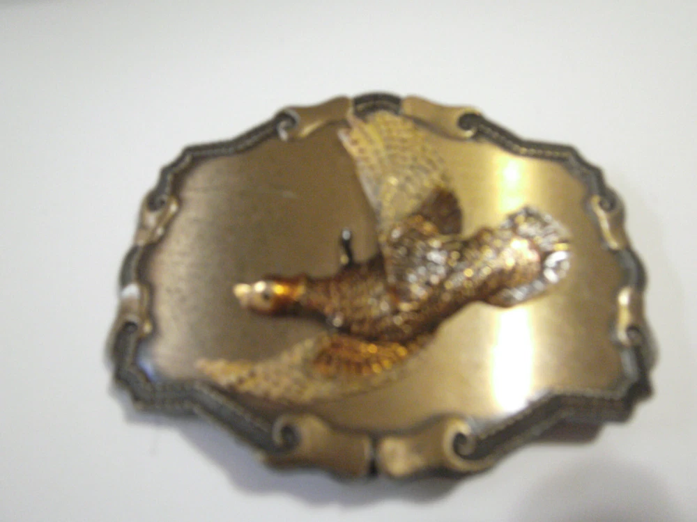 Vintage Raintree Belt Buckle Pheasant Lots of fancy scroll work around edges