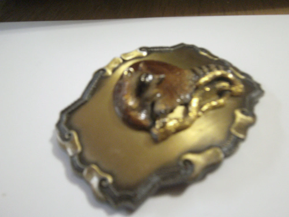 Vintage Raintree Belt Buckle Racoon Lots of fancy scroll work around edges
