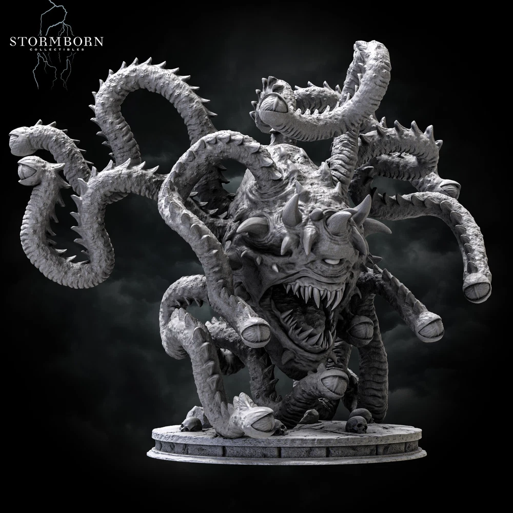 Ralakor, Lord of the Beholders from Stormborn Collectibles This listing is for a resin 3D printed physical version of the pictured model. Height: 96.5 mm (excluding base) Width: 127 mm Base Diameter: 70 mm Painting Commissions: If you would like your miniature painted, we accept commissions on any model in our store. Please message or submit a custom order if interested. Examples of painted work are available on request or at instagram (@grimini.minis) At Grimini's, our miniatures are printed to order in ABS-like resin on a 12k printer for greater durability and sharper detail. We take pride in our work and aim to provide prints of the highest quality. That is to say, if we see a layer line, we weep. Our resin of choice is light grey unless otherwise stated in listing. Other colors, brands, and formulations available on request. After printing, your miniature is washed, cured, and cleaned to a high standard before we ship it to you unassembled and unpainted. Assembly: Assembly instructions are not provided by Stormborn Collectibles but if you need help assembling your model we will assist you the best we can. We are happy to assemble your model for you on request but we recommend against this in order to prevent damage during shipping. Even so, we prepare the model to a high standard and dry-fit all unassembled pieces. However, as with any resin model kit, the miniatures generally require slight preparation. Small imperfections such as minor gaps or support marks may be expected and can be easily filled or sanded. Shipping: Time to ship is generally 3-5 business days for small to medium models and 5-7 business days for larger models. We often ship sooner but take care not to rush where quality is concerned. Orders containing more miniatures may take longer. We will contact you if we expect any delay. License: Grimini's is a commercially licensed seller of Stormborn Collectibles models. Any miniature from their selection is available on request (with rare exceptions). You can check out their work on My Mini Factory. Rendered images are provided by Stormborn Collectibles. All other images and video are samples of our printed product. We look forward to doing business with you and are glad to answer any questions you may have. New listings are added regularly, so give our store a follow if you would like to receive notifications. If there is ever a problem with your order, please reach out to us. The happiness of our customers is first priority and we will do what we can to make your experience the best. Happy painting and happy gaming!