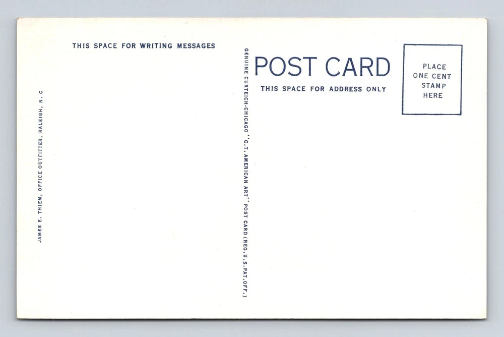 Country/Region of Manufacture: Unknown Era: Vintage Country: USA Subject: Cities & Towns Unit of Sale: Single Unit Theme: Cities & Towns Original/Licensed Reprint: Original Type: Printed (Lithograph) City: Raleigh Region: North Carolina Postage Condition: Unposted