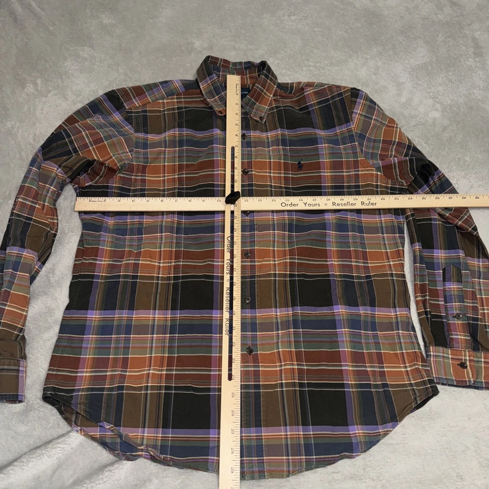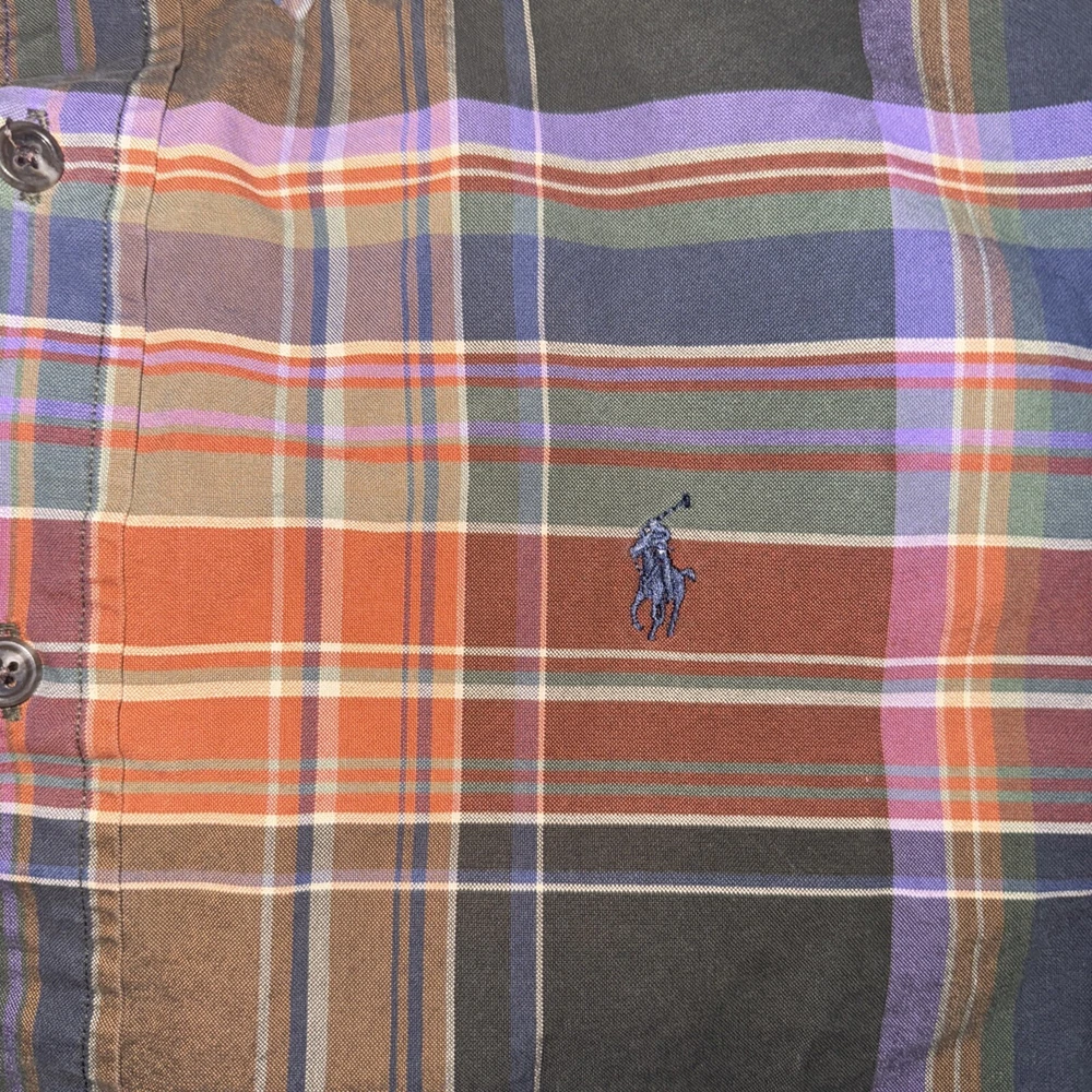 Elevate your wardrobe with this stylish Ralph Lauren button-down shirt. The shirt features a classic fit, long sleeves, and a collared neckline with a button-down closure. The plaid pattern adds a touch of sophistication to the shirt, making it perfect for any occasion, whether it be a wedding, party, or business meeting. Crafted from breathable cotton fabric, this shirt is machine washable and suitable for all seasons. It also features embroidered accents and the iconic small pony and Ralph Lauren characters. This shirt is a must-have for any fashion-forward man who wants to make a statement.