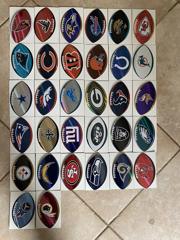 Rare 2009 NFL Prismatic Football Stickers Entire Set of 32 Vending Machine.