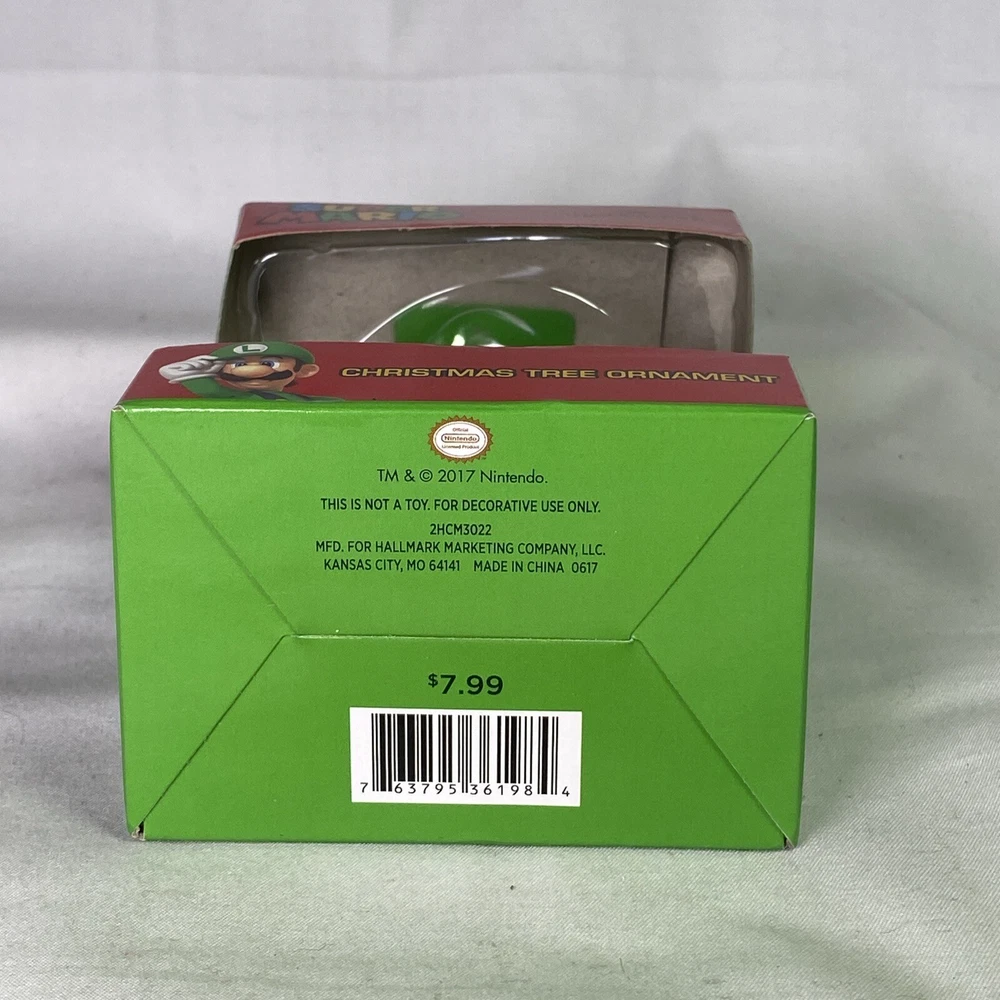 Number of Items:1Brand:HallmarkFranchise:Super Mario Bros.Set Includes:OrnamentProduct Type:Resin Ornamentgtin13:0763795361984MPN:2HCM5904Color:MulticolorCollection:OrnamentsTheme:HolidayCountry/Region of Manufacture:ChinaMaterial:ResinTime Period Manufactured:2010-2019Occasion:ChristmasBrand, Artist:Hallmark KeepsakeShape:Luigi ShapeUPC:0763795361984Year Manufactured:2017Features:LuigiHalmark Ornament Period:2017Modified Item:NoType:OrnamentTitle / Name:LuigiOrnament Condition:MintCharacter:LuigiSubject:Super Mario BrosSeller Notes:“Excellent condition but box bent as seen in photos”Featured Refinements:Hallmark Keepsake OrnamentHoliday:Christmas