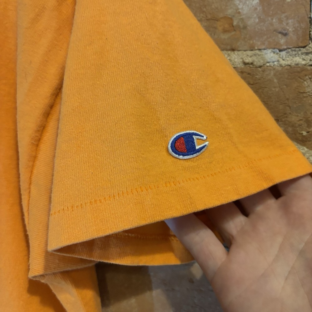 $50 Vintage 90s Champion Tshirt Size: xl Condition: small hole shown in pictures Embrace the nostalgia of the '90s with this vibrant orange Champion T-shirt. A true vintage piece from the 1990-1999 era, it offers a blast of retro style with its classic crew neck and short sleeves. Made with comfortable cotton material, this regular fit XL tee is a perfect addition to any casual wardrobe. The shirt features a timeless solid pattern with the iconic Champion logo accent, adding a touch of sporty elegance. Proudly made in the United States, this T-shirt is machine washable for easy care. Whether you're out for a laid-back day or just looking to rock some vintage flair, this Champion tee has got you covered.