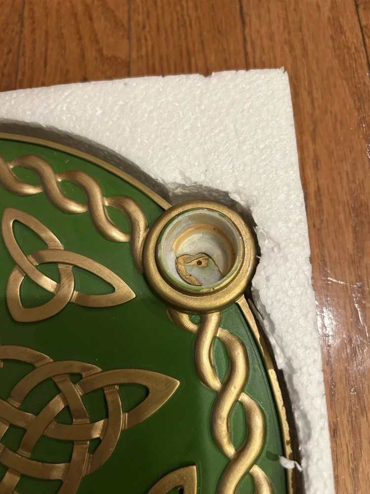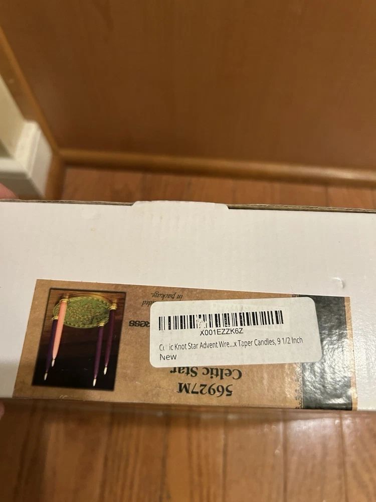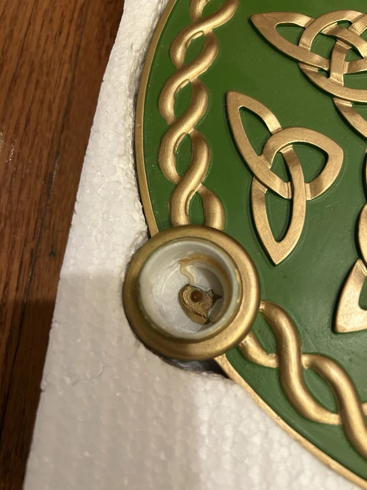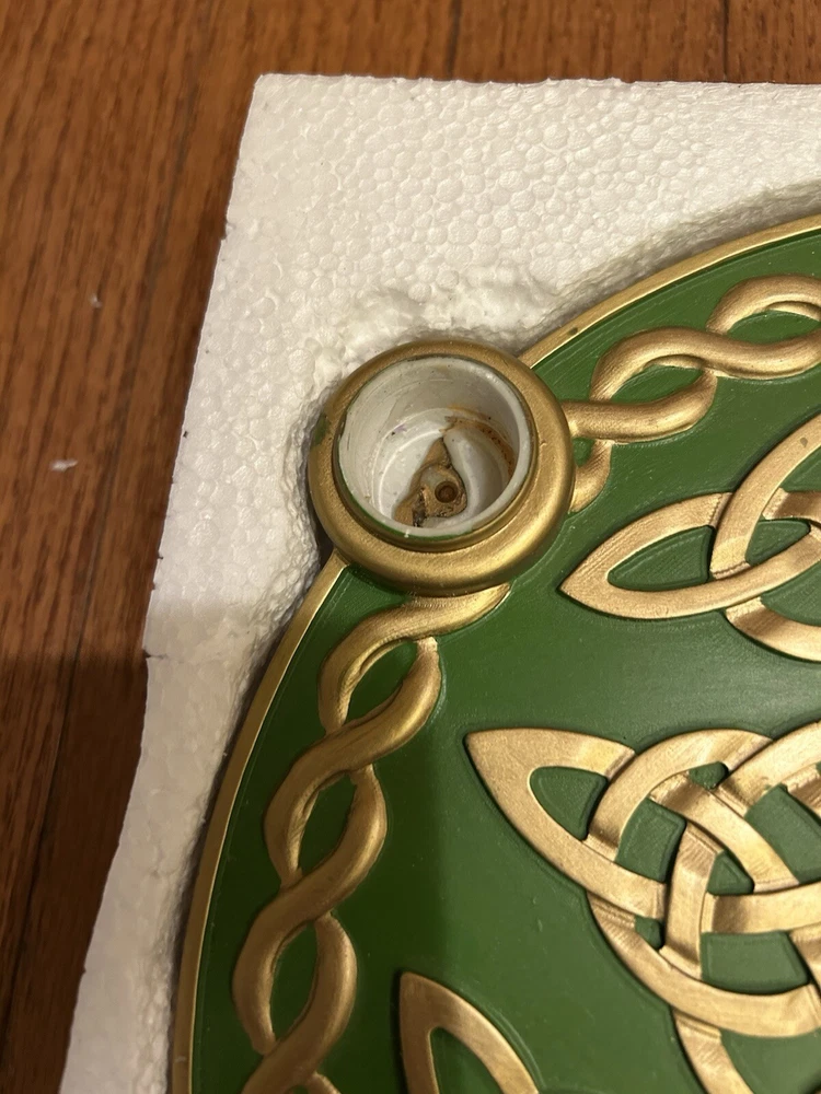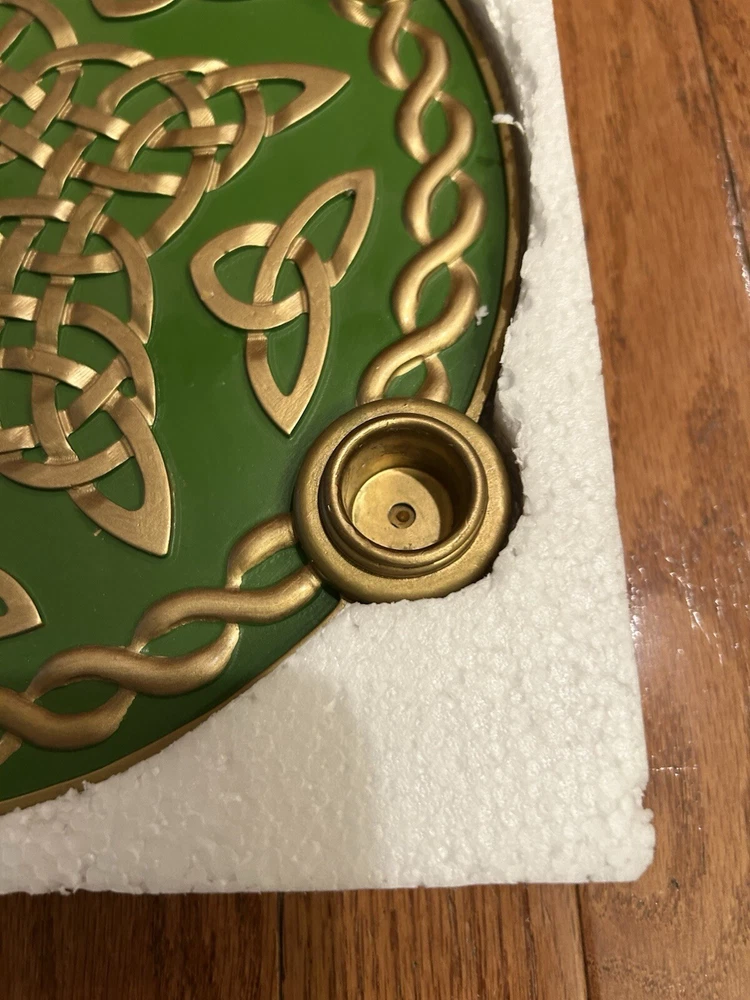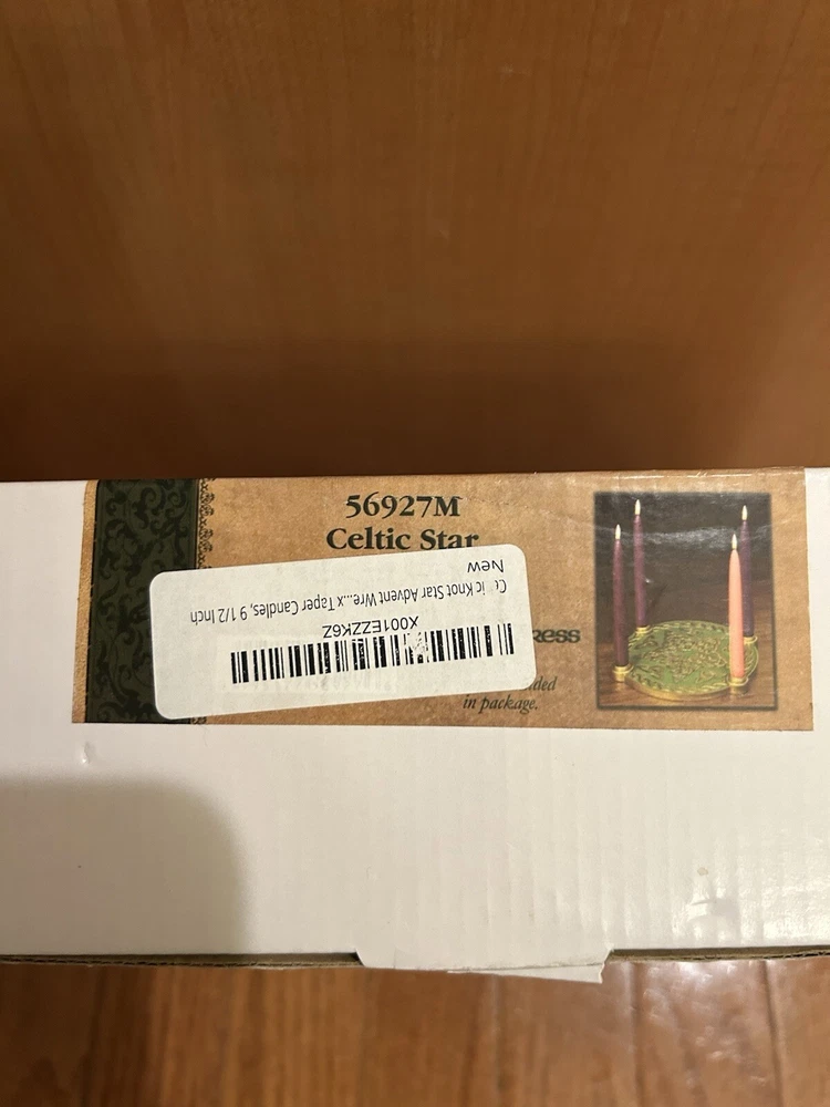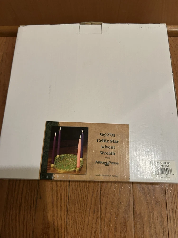 This auction is for a rare Advent Wreath from Abbey Press. It is a Celtic Star Advent Wreath. #56927M. Good color and clean felt on the bottom. Three of the candle holders have lost their gold colored insert (as shown in the pictures). But, looks very good and with candles in place, it would look great. In original box with styrofoam packing. Nice item. High bidder to pay $12.95 S&H.