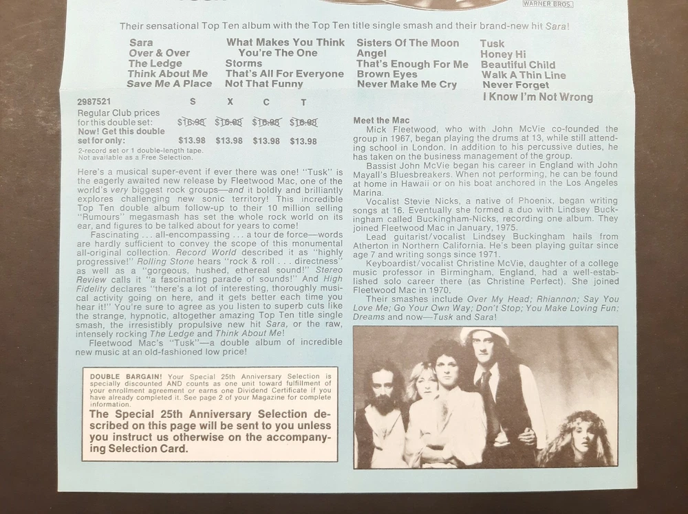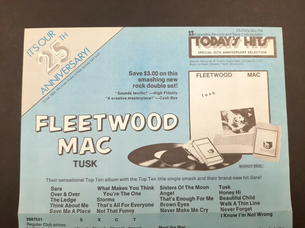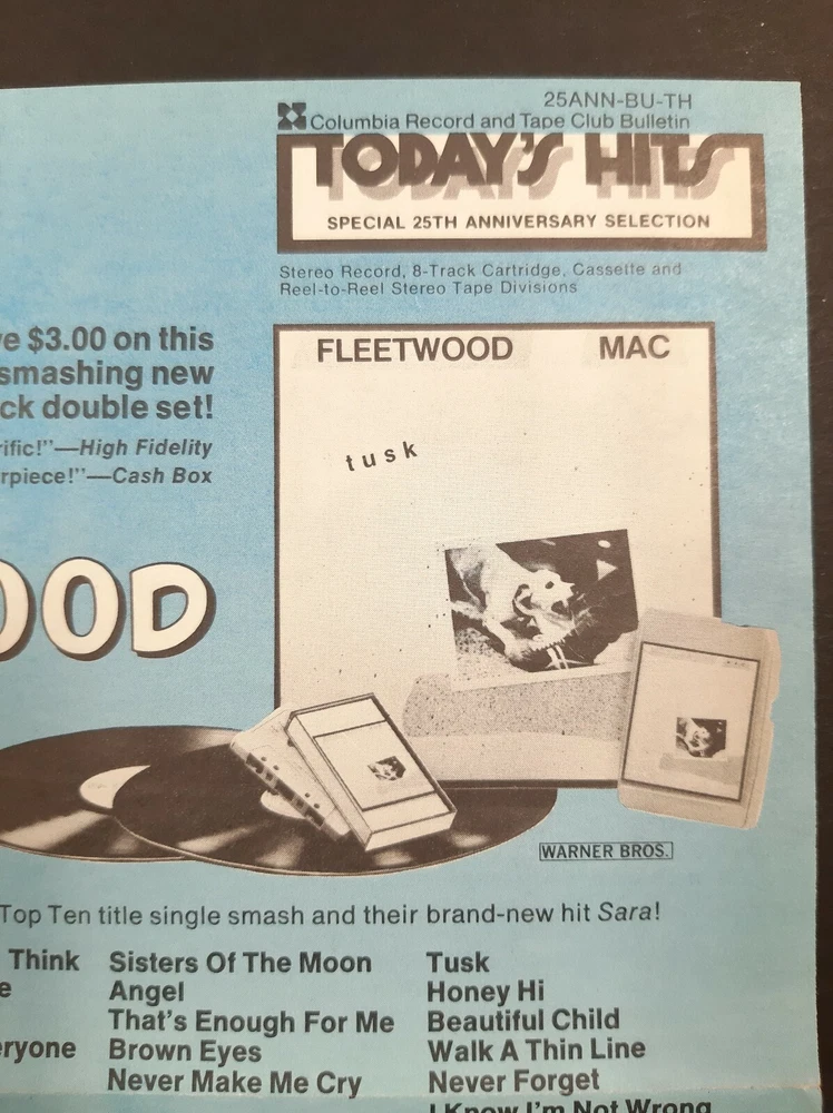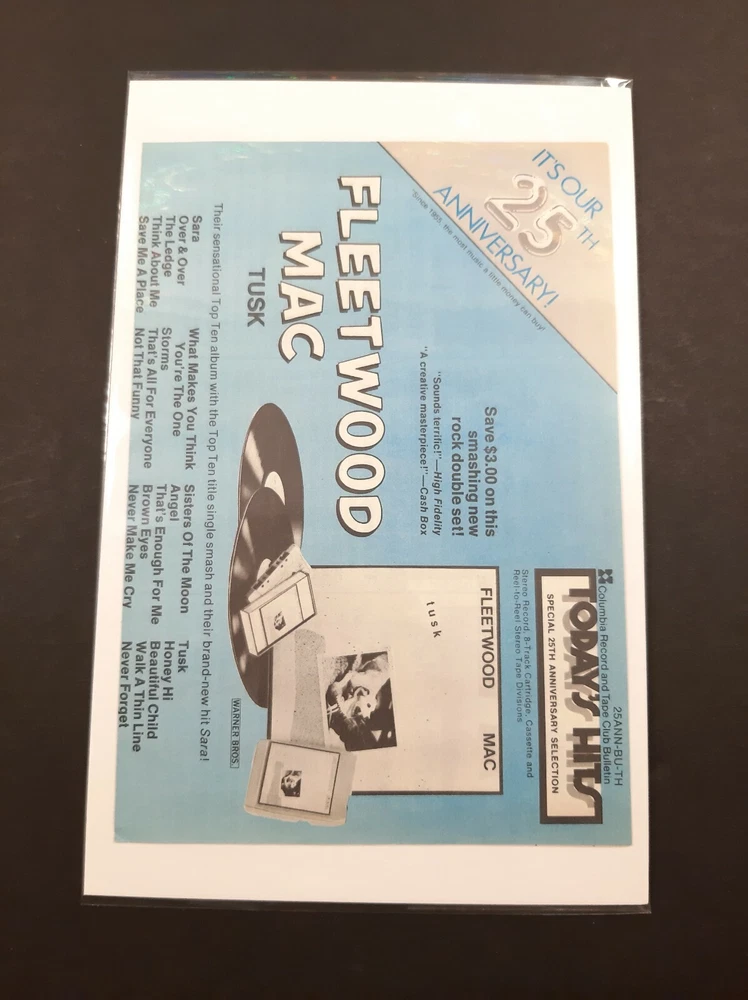 Hello and welcome! Up for sale is this Rare FLEETWOOD MAC "TUSK" ~ Columbia Record & Tape Club Music Ad ~ 10" x 7 1/4. It's in excellent light used condition with little to no wear. I think this vintage music advertisement would look awesome framed up and would be great in any music collection. Make sure to see all photos! If you have any questions, please feel free to send me a message and I'll be happy to help.