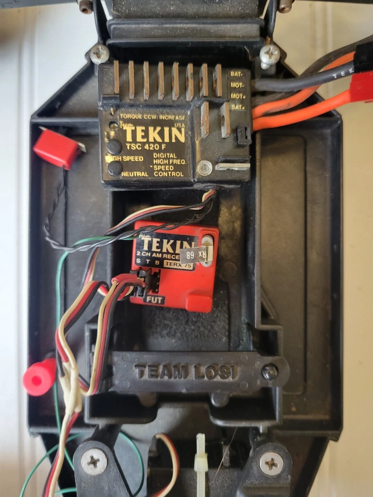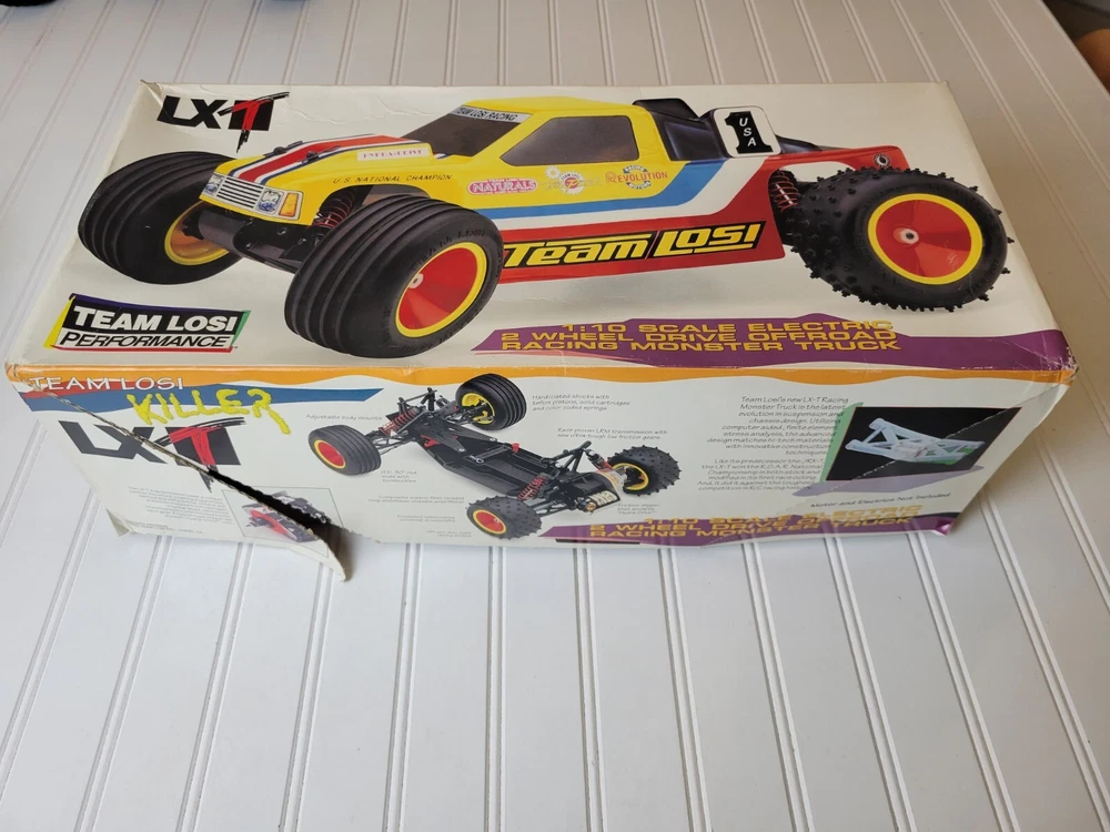 This rare vintage Losi LXT RC Stadium Truck is a must-have for any vintage RC collector. With its 1:10 scale and intricate details, this truck is sure to impress. Includes Box, instruction manual and everything shown pictures. All electronics are included, but I do not know their functionality. ESC and receiver are Tekin. Also includes a Futaba Magnum Junior controller that does power on. Batteries are not included. There are minor scratches on the bottom of the chassis. There are no visual cracks or breaks in any of the components on the truck. Don't miss out on the chance to own this vintage RC truck. Free shipping vis UPS within lower 48.