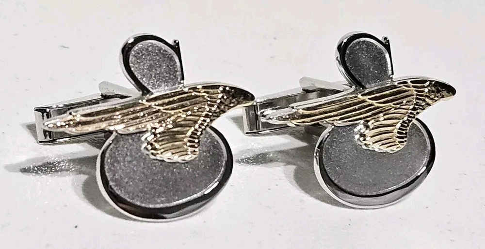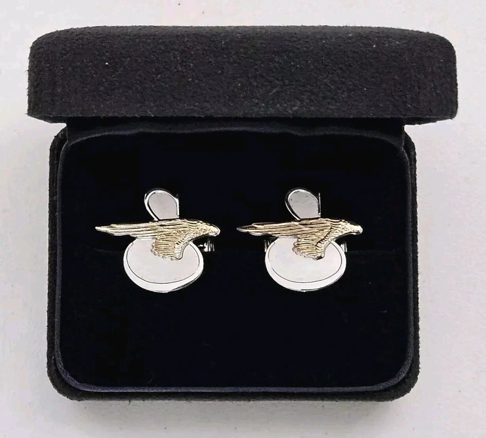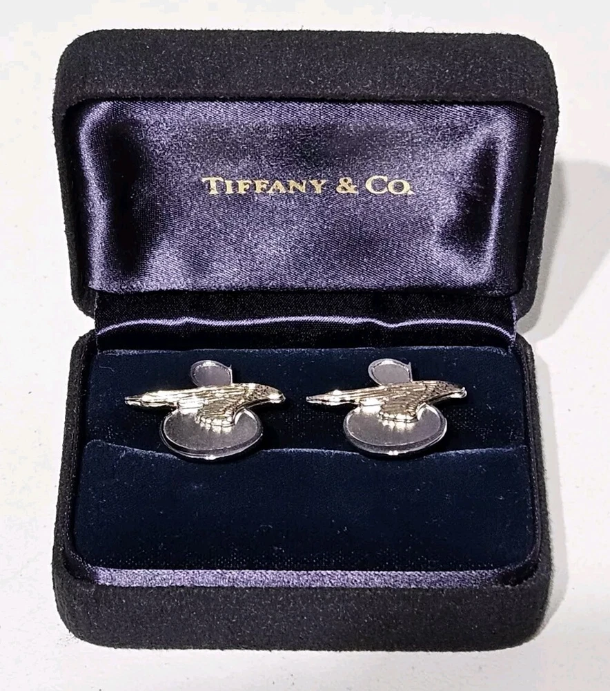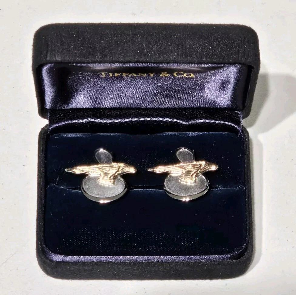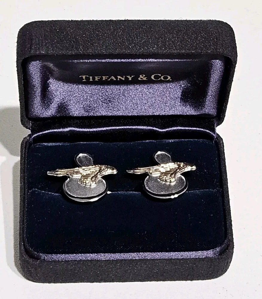 Up for sale is a Rare Pair of Tiffany & Co. Sikorsky Aircraft/Lockheed Martin Executive Sterling Silver and 14K Yellow Gold Cufflinks. Measures approximately 1" Wide X 7/8" High. Total weight is 11.4 Grams. Cufflinks come in original Tiffany & Co. gift box. Cufflinks are in excellent condition. Please feel free to ask questions. Thank you. From a smoke and pet free environment E-345