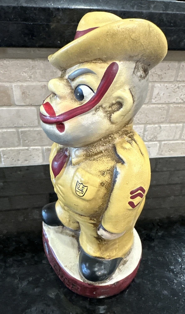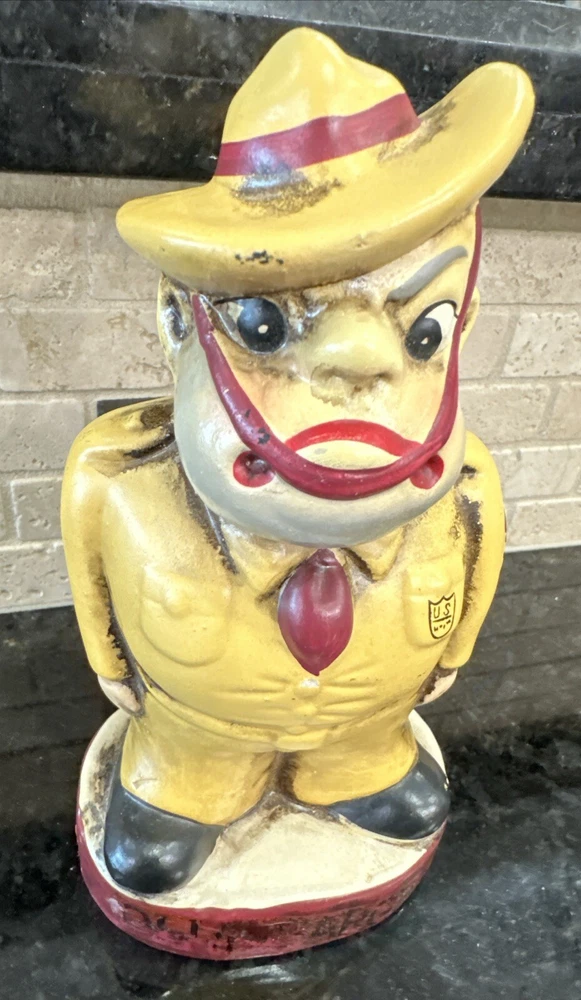 Rare Vintage Buco Chalkware Bank. Texas A&M Olde Sarge College Mascot Really rare and great color!! This presents very well, the Olde Sarge is faded away on the front and it does shows its age. See photos and enjoy!!