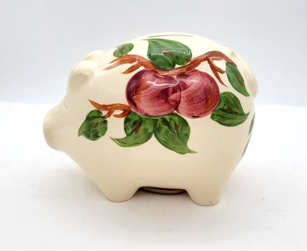 Rare Vintage Franciscan Apple Pattern Piggy Coin Bank Original Rubber Stopper in Excellent condition. Thanks for looking! Check out my eBay store for more great items at good prices. https://www.ebay.com/str/stuffedcupboardsshop If you order multiple items from my store I try to combine shipping to save you money.