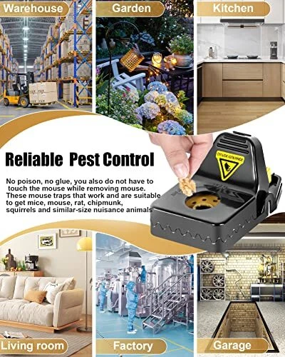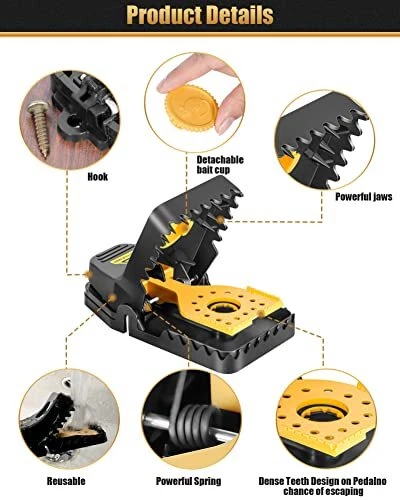 Return Policy Fast Delivery Trusted seller Rat Trap, Large Chipmunk Traps, Mouse Traps for Indoor & Outdoor, Instant Kill Traps for Mouse Rat Chipmunk, Safe Set Up and Reusable - 6 Pack Black Product Description ???? ?? ??? ??? ???? – Get Rid of Mice with Ease! Simply Set It and Catch Those Pesky Rodents. Our mouse traps have removable bait caps, when set the bait, just open caps. It is not only easy to set, but also safe and no more worrying of snapping fingers. ???? ?? ??? ??? ???????? – Keep Your Home Clean and Safe! No poison, no glue, yellow bait cap and precision trigger is easier to be found when people pass by it, which prevents accidental touch and ensure your family members's safety. ?????? ????????? ??? ????? ???? – Stop Mice in Their Tracks! These mouse traps are more effective and safe compared to traditional wood or metal traps, with high strength sharp teeth, washable material and stainless steel springs.Don't Let Them Take Over Your Home! ???????? ??? ??????? – Mouse traps are still functional after thousands of tests. Unlike traditional, wood traps that are difficult to set and tend to leave foul odors and stains, It is easy to mold and breed harmful bacteria for a long time. ??? ???? ?????????? – If you have any question or complaint about pest control trap, pls contact us and we will assist you within 24 hours. Shipping Returns Payment Shipping Shipping is FREE to all addresses other than APO/PO boxes in the lower 48 states. All our stock ships from US-based warehouses. Shipped via USPS or UPS (depending on location and package weight) Unless stated otherwise, all orders will ship within 24-72 hours of your payment being processed. Check our feedback to see the great reviews of FAST shipping we offer. Returns Seller does not accept returns Payment We currently accept payment via eBay managed payments only. Once payment is cleared, we will dispatch your shipment within 1-3 business days. Please refer to the "Shipping" tab for more information regarding shipping speed to your destination.