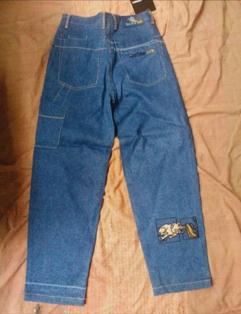There are two linear weaving scratches on the right side of the front. It does not affect wearability. Brand new, unused with tags. Size: 16 Total length: approx. 100cm Waist: approx. 74cm Thigh width: approx. 28cm Hem width: approx. 19cm