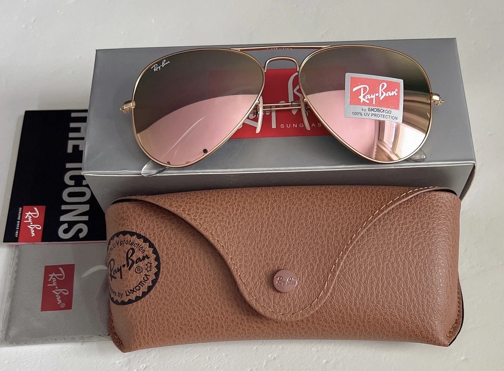 Personalized: No Frame Material: Metal Lens Material: Mirror Theme: 80s, 90s, American, Band, Beach, Biker, Classic, Designer, Motorcycle, USA Lens Color: Pink MPN: RB3025 Brand: Ray-Ban Country/Region of Manufacture: Italy Pattern: Solid Model: Ray-Ban RB3025 Lens Technology: Mirrored UV Protection: UV400 Type: Sunglasses Features: Oversized, Reflective Style: Aviator Frame Color: Gold Department: Women Temple Length: 135 mm Vintage: No