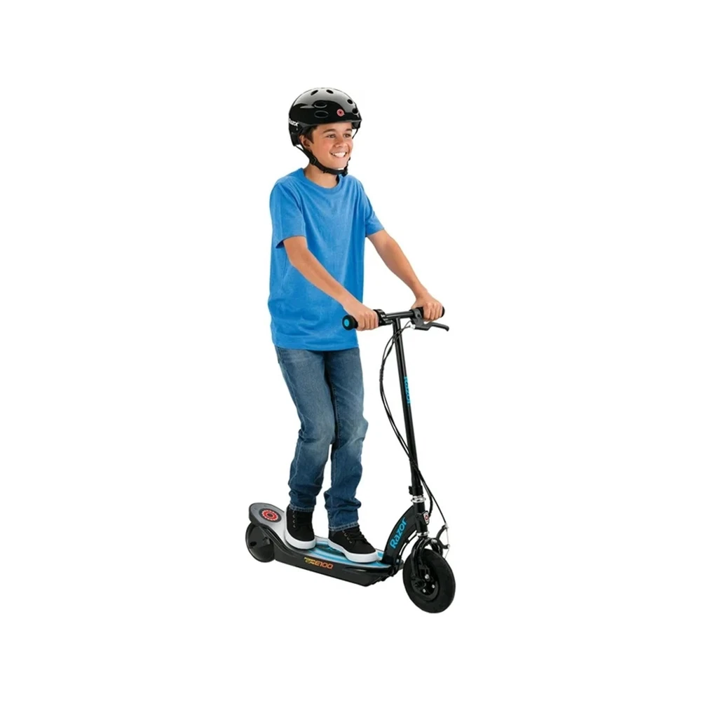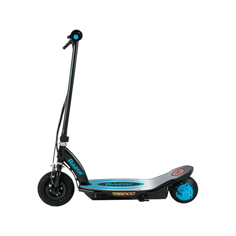 Razor Power Core E100 Electric Scooter - 100w Hub Motor, 8" Air-Filled Tire, Up to 11 mph and 60 min Ride Time, for Kids Ages 8 and Up Description Features: Electric Scooter: Scooter with kid-sized frame and aluminum deck for riders aged 8 and above, ensuring a perfect fit for their first electric-powered adventure Easy Controls: Intuitive hand-operated throttle and brake controls for a user-friendly and confidence-building experience Thrilling Speed: High-torque, single-speed, chain-driven 100-watt motor offers a top speed of 10 mph, providing just the right amount of excitement for young users Long-Lasting Fun: Enjoy up to 40 minutes of continuous electric-powered thrills on a single charge; Electrical system certified compliant with UL 2272 by ACT Lab LLC, an accredited testing lab Builds Confidence: Kick-start the journey with ease, fostering comfort, confidence, and control for a lifetime of exciting rides Product Details: Brand: Razor Color: Blue Age Range (Description): Adult Special Feature: In-wheel Hub Motor Weight Limit: 120 Pounds Number of Wheels: 2 Model Name: Power Core E100 Electric Scooter - Blue (Aluminum Deck) Wheel Material: Rubber Frame Material: Aluminum, Alloy Steel Item Weight: 26 Pounds Brand: Razor Color: Blue Age Range (Description): Adult Special Feature: In-wheel Hub Motor Weight Limit: 120 Pounds Number of Wheels: 2 Model Name: Power Core E100 Electric Scooter - Blue (Aluminum Deck) Wheel Material: Rubber Frame Material: Aluminum, Alloy Steel Item Weight: 26 Pounds Handlebar Type: Riser Wheel Size: 8 Inches Wheel Type: Pneumatic Suspension Type: Front Suspension Grip Type: Foam Brake Style: Front Braking Recommended Uses For Product: Transportation, Recreation Maximum Distance Range: 8 Miles Manufacturer: Razor USA, LLC UPC: 845423020699 845423019617 Global Trade Identification Number: 17 Item Package Dimensions L x W x H: 34.41 x 16.77 x 8.19 inches Package Weight: 13.6 Kilograms Item Dimensions LxWxH: 33.7 x 35 x 16.5 inches Brand Name: Razor Material: other Suggested Users: unisex-teen Number of Items: 3 Part Number: 13111298 Model Year: 2020 Style: Aluminum Deck Included Components: Power Core E100 Electric Scooter, charger, and Owners Manual Size: One Size Date First Available: October 26, 2017 Delivery We Do Not Ship Outside of the Continental US. Return Policy All items qualify for returns within 30 days of receipt. Buyer is responsible for return shipping on any item that is not damaged. Feedback We take our reputation seriously, we buy and sell online, so we understand the value of trust. If you are unsatisfied with your order, please contact us and we will work with you to resolve it to your satisfaction.