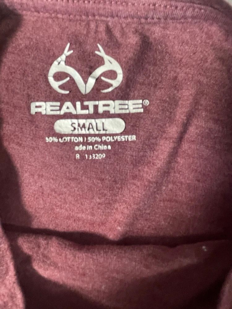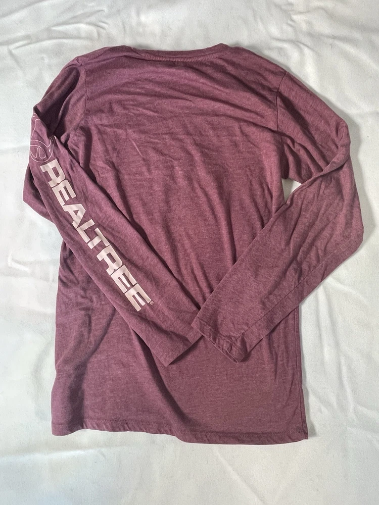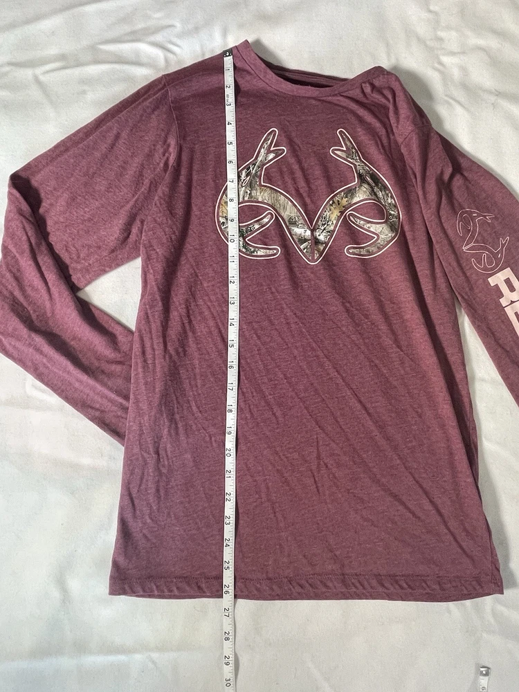Realtree Men’s Maroon Long Sleeve Logo Shirt Size S Measurements in photos