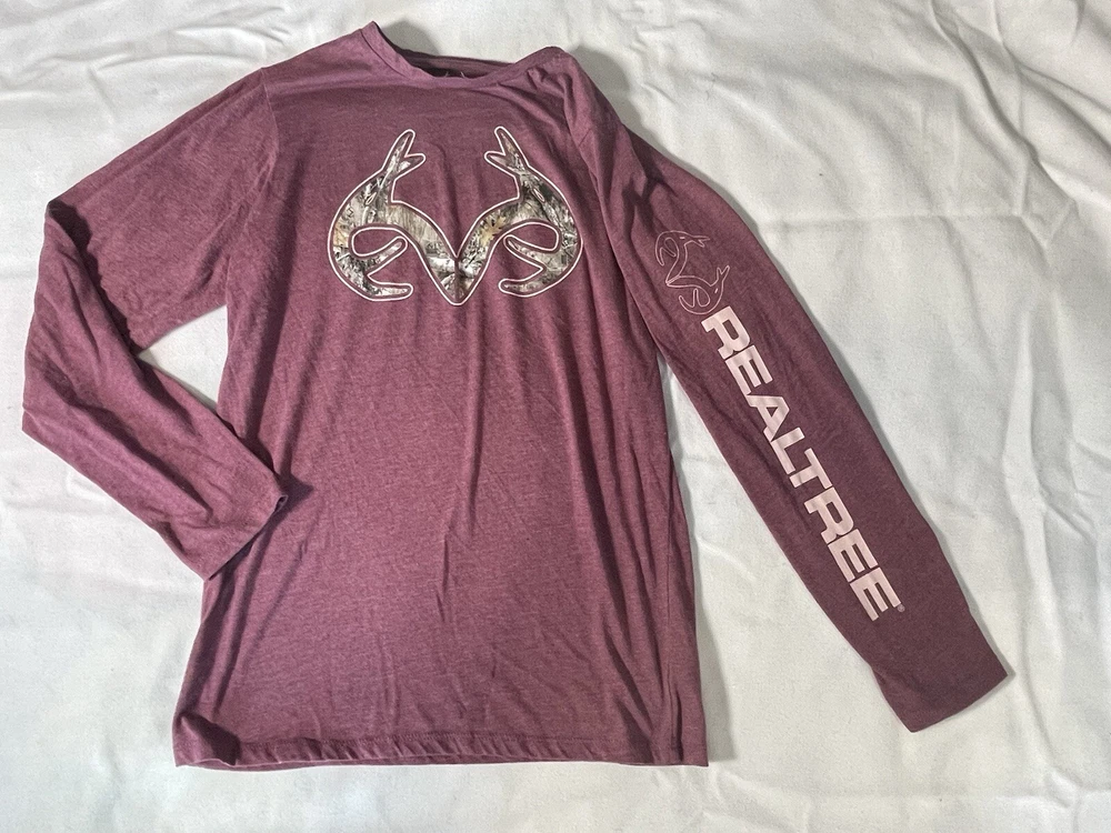 Realtree Men’s Long Sleeve T-Shirt Size S Maroon Camo Antler Logo