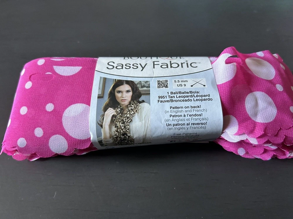 Red Heart Boutique Sassy Fabric Yarn Pink Dot 100% Polyester for Scarf