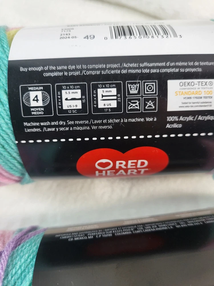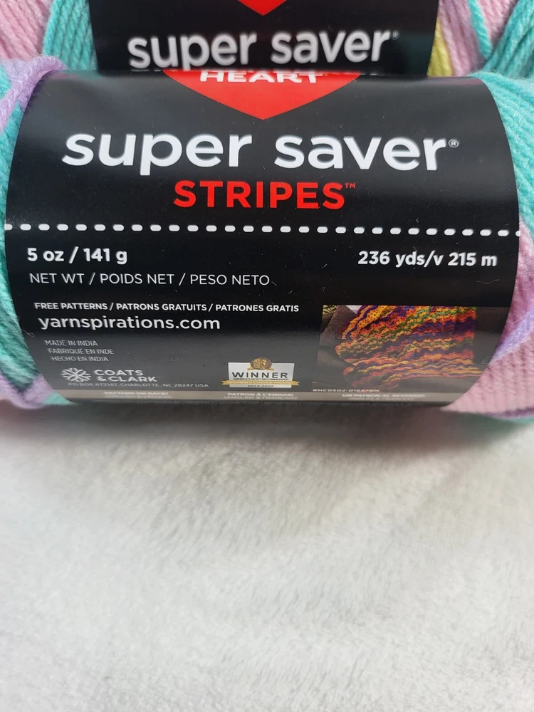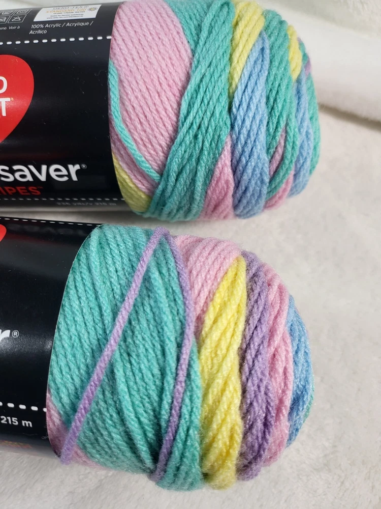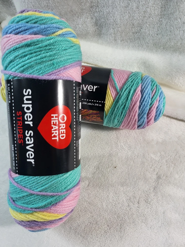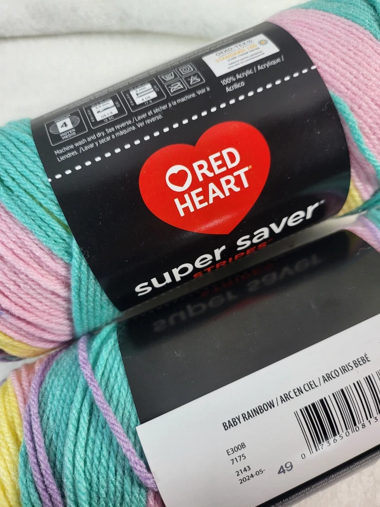 Add some vibrant color to your knitting or crocheting with this lot of Red Heart Super Saver striping yarn. The baby rainbow design is perfect for creating cute and playful pieces, while the acrylic fiber content ensures warmth and comfort. The medium/worsted weight yarn is versatile and easy to work with, making it a great choice for both beginners and experienced crafters. This lot includes two skeins of multicolor yarn, each measuring approximately 100 yards. Get creative and let your imagination run wild with this fun and stylish Red Heart Super Saver Lot of 2 Stripes Yarn!