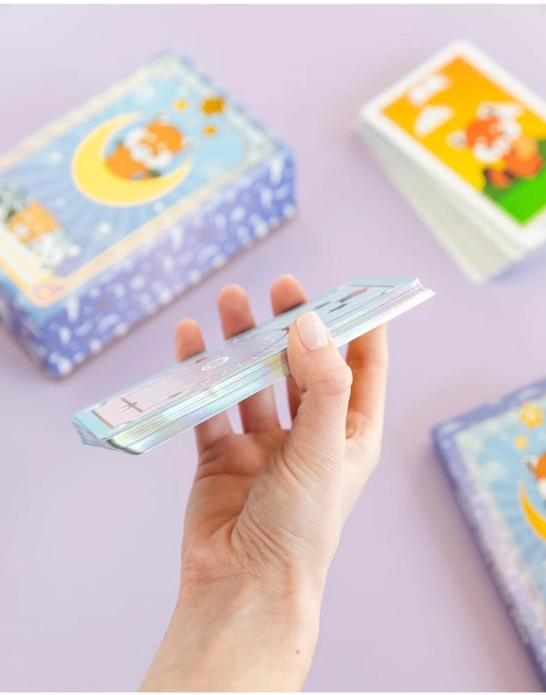 Red Panda & Friends 88 Miracles Tarot Card & Guidebook (NEW). Enchanting Design - Enter the mystical world of tarot with Red Panda & Friends Tarot Cards. These oracle cards offer vibrant prints and imagery that evoke a sense of mystery, serenity, and anticipation. Crafted by spiritual artists from the USA, each card is a window to accurate symbolic interpretation. Premier Quality & Durability - Constructed with the intention to accompany you through countless sessions of introspection and guidance, these tarot cards are made from high-quality materials. Their beautiful colors, refined edges, and the tactile pleasure they provide during shuffling and handling are a treat to inspire and endure. Comprehensive Guidebook Included - Improve your understanding of tarot with our guidebook, offering three times the insight found in typical manuals. This compendium of symbolic meanings delves into the past, present, and future, enriching your readings and expanding your interpretative skills with detailed explanations of each oracle card's significance. Instant Access to Online Course & Community - Whether you're a beginner eager to learn the art of tarot reading or an advanced practitioner looking to deepen your knowledge, our exclusive online course and community offer a space for growth and connection. Engage with fellow enthusiasts, share insights, and enhance your practice with the support of a like-minded collective. Perfect Gift of Mystical Insight - In the realm of tarot, the tradition holds that a deck received as a gift carries special energy and positive karma. Embrace this belief by gifting the Red Panda & Friends Tarot Cards to someone special or treating yourself with love and intention. It's an invitation to embark on a personal journey of discovery and enlightenment.
