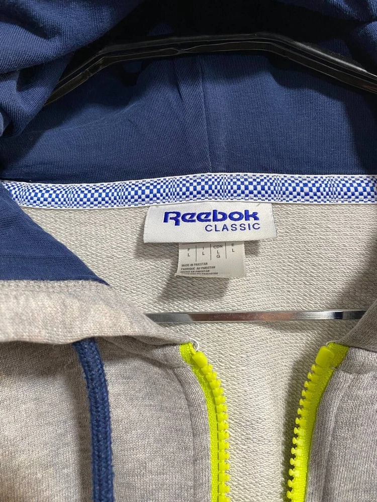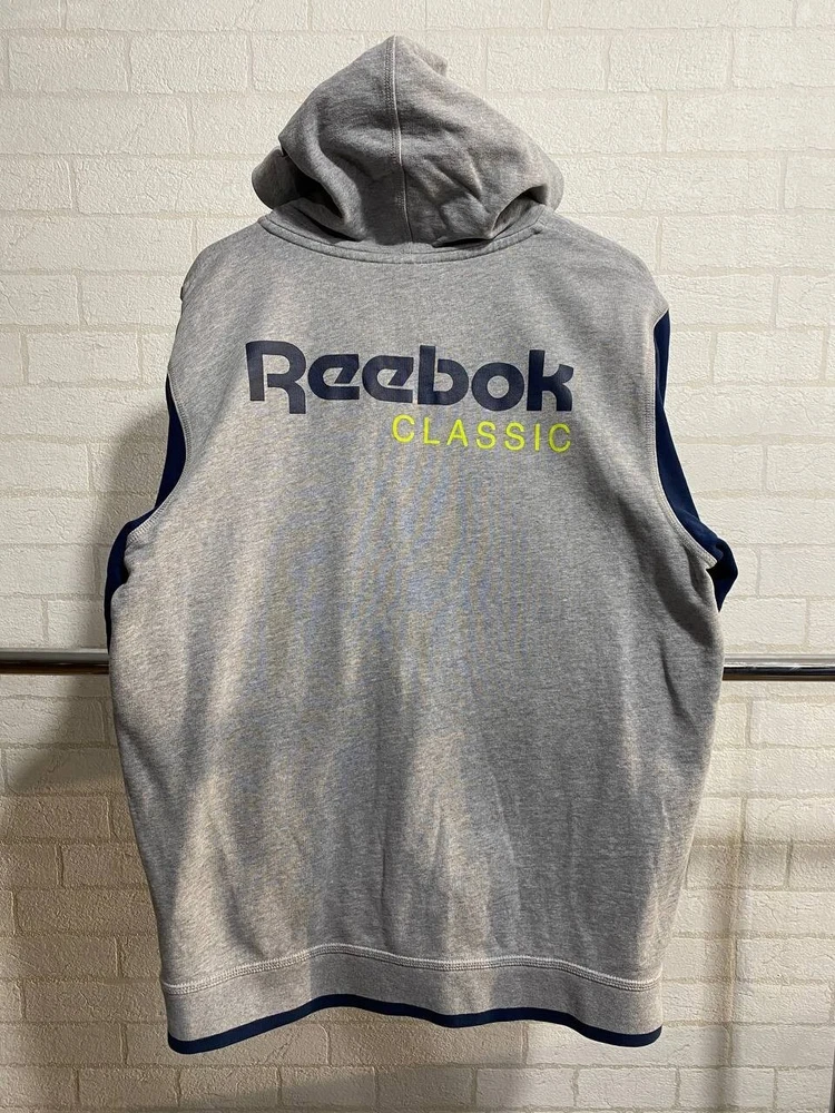 Size: L Vintage: Yes Size Type: Regular Accents: Logo Style: Hoodie Features: Hooded Type: Hoodie Brand: Reebok Product Line: Reebok Classic Color: Gray Theme: Logo Department: Men