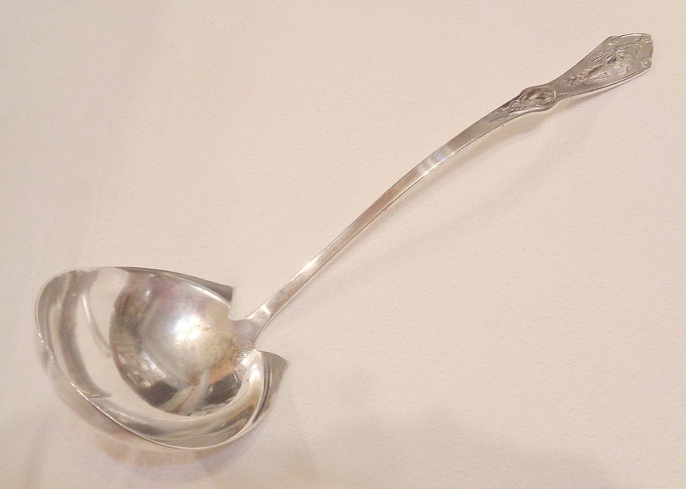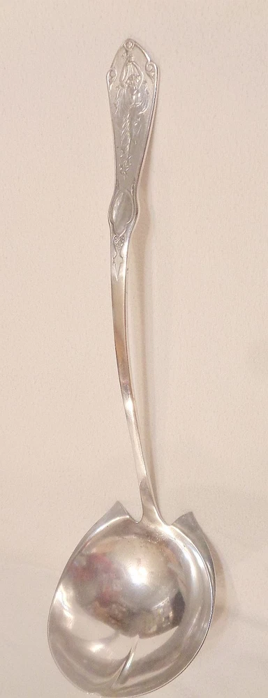 The shipping costs for the 50 states and Puerto Rico are included in the listed price of this item. For any other destination, please email for a shipping quote BEFORE bidding. I ship only by USPS Priority Mail & Express Mail, no exceptions. I NEVER ship silver in envelopes. I neither solicit nor accept offers. Listed items will not be marked down during the listing duration. Pearl was introduced by Reed and Barton in 1898. The pattern features a variety of classical figures, making it a multi motif pattern. A collection of Pearl would show over a dozen different figures, most having something to do with music or dance. This is an excellent example of the high style aesthetic movement. Soup ladles came in a variety of sizes. They were used for serving both soup and other soup- like foods such as stew. The size is what distinguishes the ladles from one another. The true punch ladle is a special form, with a wide, deep, and narrow bowl with pour lips. The largest of the true soup ladles is called the soup , the next is the medium, then comes the oyster ladle, and the smallest is the bouillon. The punch ladle with separate pouring spouts seems to have been introduced in the 1880s, and most silverplate sets did not have them. Other types of ladle include the sauce ladle, the gravy ladle, the mustard, and the mayonnaise. Old sets of china have numerous tureens, all with specific functions, and the ladles were meant to go in them. Selecting a ladle for a tureen is not as easy as it sounds. The ladle must be much bigger than seems logical. This is so the ladle does not accidentally become drowned in the soup, which is both and embarrassment and sort of funny. There is no gracious way of bringing it back to the surface. Generally, the tureen sits in front of the host who ladles the soup into soup bowls or plates and passes them down the table. Passing a full tureen around is both heavy and awkward. Tureens and their ladles are wonderful for buffets and sideboards. The large soup ladle offered here measures about 13". This is not a piece of new silver. It shows the patina of as much as 125 years of use. There are the light scratches which constitute normal patina. There is no monogram. Silver is softly lustrous. There is some silver loss inside the bowl and on one edge of the outside of the bowl, as shown in the pics. This kind of silver loss with some pitting comes from allowing soup to dry on the bowl, then scraping it off. Don't do this. The pattern is crisp and clear. I polish all silver before listing on eBay. Please email with any questions before bidding. PLEASE READ THE ENTIRE AUCTION DESCRIPTION CAREFULLY. BY BIDDING YOU AGREE TO ABIDE BY MY TERMS OF SALE including the cost and method of shipping and my return policy. I welcome international bidders, but remember that shipping charges can be high. Ask before you bid. Winning bidder to pay shipping charges unless otherwise specified. I ship by United States Postal Service only. I ship all silverware via USPS Priority Mail in boxes. I NEVER ship silverware in envelopes. I insure ALL shipping, as I sell old and scarce items that cannot be easily replaced. Domestic shipping charge for 1 pound or under is now $9.71, which is Priority Mail. International shipping charges vary widely, and I now must use only International Priority shipping, in order to be able to insure the package, purchase a tracking number and proof of delivery, all of which protect both buyer and seller. I now print shipping labels online to keep shipping costs down as much as possible, so I can ship only to the buyer�s confirmed address. I regret that I can no longer ship gifts directly to the recipient. Payment in US funds only, and I can accept only eBay�s payment system. I must receive payment in full within 7 days after the end of auction or a store purchase . Due to misuse of a former return policy, I will no longer accept returns. I will of course take responsibility for items that arrive damaged or if there is a serious error in the listing. See item description for payment & shipping methods. FREE scheduling, supersized images and templates. Get Vendio Sales Manager. FREE scheduling, supersized images and templates. Get Vendio Sales Manager. Over 100,000,000 served. Get FREE counters from Vendio today!