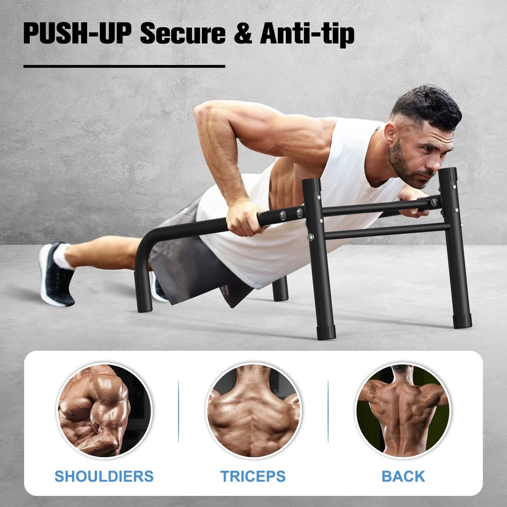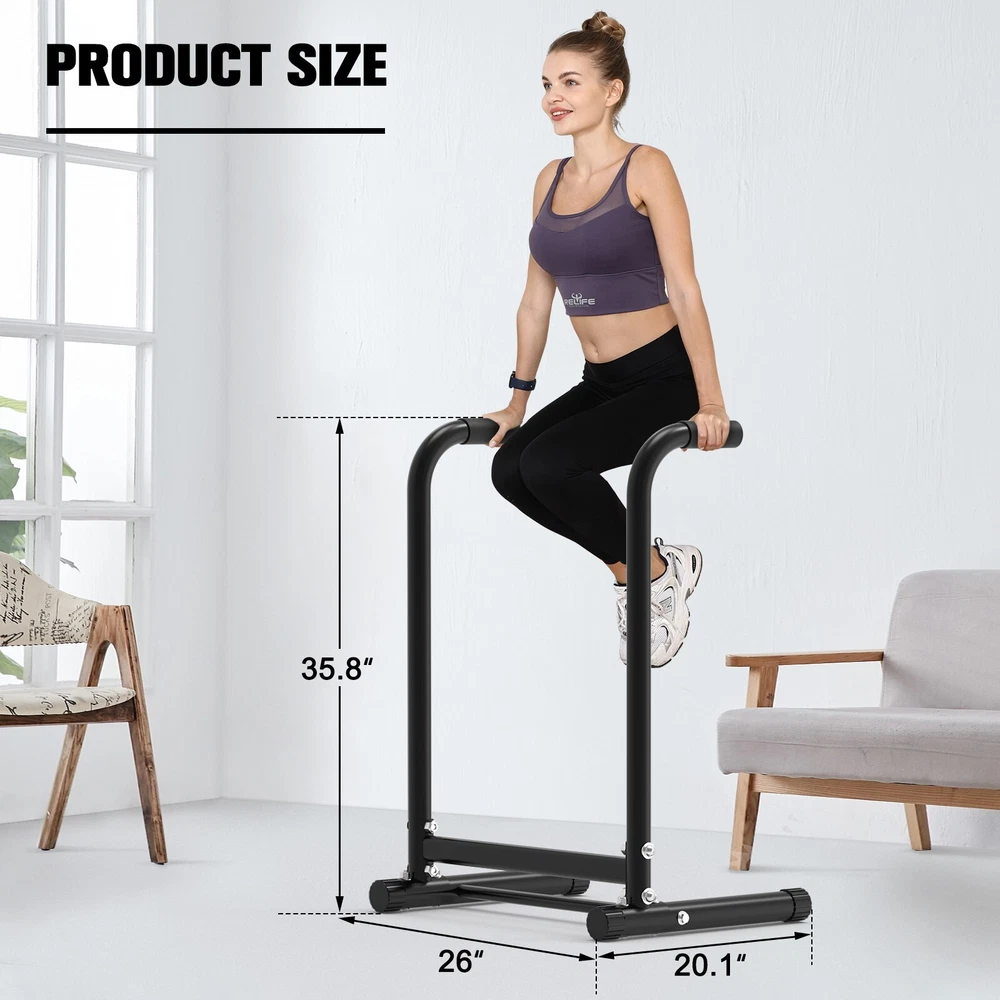 RELIFE REBUILD YOUR LIFE Dip Station Product Description Elevate your strength training experience with the RELIFE REBUILD YOUR LIFE Dip Station. This high-quality dip station is designed for home fitness, combining strength and stability, and is suitable for fitness enthusiasts of all levels. Brand : RELIFE REBUILD YOUR LIFE Material : Alloy Steel Color : Black Product Dimensions : 26"L x 35.8"H Handle Type : Bar Package Dimensions : 37 x 12.25 x 2.75 inches Package Weight : 7.69 Kilograms Key Features Powerful & Solid The dip station is made from heavy-duty alloy steel and supports up to 350 lbs. Its durable steel construction ensures safety during workouts. Anti-loosening nuts on both sides add extra security, preventing accidents during use. Unique Design The dip station features a unique shape that provides even force distribution without wobbling, making it ideal for beginners. Anti-loosening nuts offer additional safety, suitable for users of all levels. High-Quality Coating The baked-on paint coating prevents flaking and rusting, maintaining a smooth finish for long-term use. Why Choose Us? By choosing the RELIFE REBUILD YOUR LIFE Dip Station, you're not just investing in fitness equipment—you're investing in your health. Our products undergo rigorous quality checks to ensure the best experience for every user. Whether you're a fitness novice or an experienced trainer, this dip station is the perfect choice for enhancing strength and shaping your body.