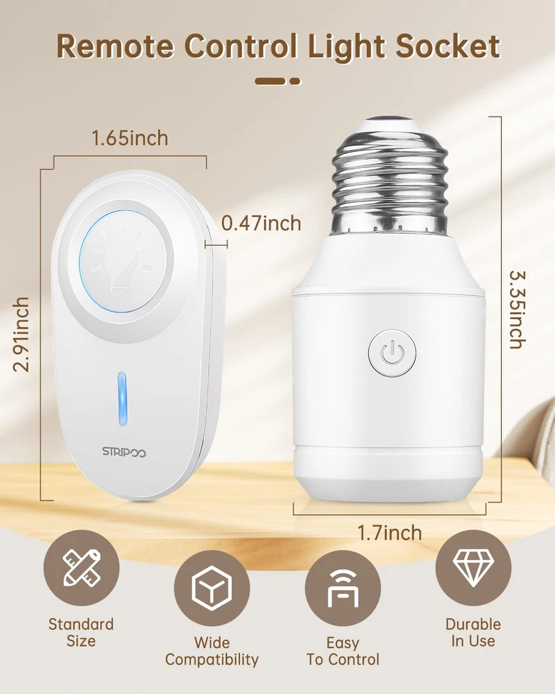 Store New Arrivals Add to Favorite View Feedback Contact Remote Control Light Socket E26/E27 Bulb Base Holder, Wireless Light Switch for Pull Chain Light Fixtures, 300FT RF Range, No Wiring Wireless Light Switch for 500W Light Fixtures Description Wattage 500 watts Material Polycarbonate (PC) Country of Origin China Package Dimensions 4.65 x 3.43 x 1.85 inches; 3.84 ounces Batteries 1 Lithium Metal batteries required. (included) Base Type Medium 【 Wireless Remote Control 】This remote control light socket allows you to pull chain light fixtures and traditional light switches. It can be easily installed by sticking wall switches, allowing you to easily control indoor lighting equipment remotely. 【300 FT RF range】Strong RF signal works through walls and doors without any interference; up to 300ft range in open areas;Suitable for open areas such as bedrooms, living rooms, and garages without interfering with other household appliances. Makes your life more convenient and efficient. 【Wide Compatibility】Our remote control light socket is suitable for most E26/E27 bulbs with power up to 500W, including LED bulbs, smart bulbs, CFL bulbs, fluorescent bulbs, corn bulbs, incandescent bulbs, halogen or tungsten bulbs, etc. . PS: This will increase the height of the bulb by 2.36 inches (6 centimeters). Please confirm the height of the lampshade before purchasing. 【High Quality and Durable Material】Wireless remote control light socket is made of fireproof PC material and Anti-UV, which can be effectively flame retardant and prevent switch from fading. This light socket ensures stable and convenient functions while also considering user safety. 【DIY Your Home】Remote light switches can be programmed and expanded at will, allowing one switch to control multiple light sockets simultaneously or multiple switches to control one light sockets simultaneously. It is the perfect solution to upgrade your smart life. Product Description 300FT RF Range Control Remote Control Light Socket For Higher Power Light Bulbs Multiple Safety Protection Premium quality wireless light socket, provide safety for your family. V0 Fireproof PC Material and Anti-UV Short Circuit Protection Overcurrent Protection Anti-Surge 3000V FCC Certification Wide Application Replace Old Pull Chain Lights Programmable and Expandable ABOUT US We offer the best prices around on high quality products. Our E-store includes media such as books, movies, music and games while offering electronics, toys, sporting apparel, clothing, tools, general home, garden items and more. SHIPPING We are always working hard to ensure your package arrives as soon as possible. Please understand that some factors like weather, high postal traffic, and the performance of shipping companies are outside of our control. We offer free shipping to the lower 48 states and ship within 2 business days of payment, usually sooner. We do not accept P.O. Boxes. Please provide a physical address. For shipping outside of the continental USA, we only use eBay's Global Shipping Program.The item is shipped to KY and then sent to the rest of the world. International customers are responsible for all duties and taxes. Continue to check out in order to calculate costs for shipping the item to your country. Messages regarding eBay's Global Shipping Program MUST be directed at eBay EXCLUSIVELY. RETURNS We offer a 30-Day Return Policy on items which you are not completely satisfied with. You have the option for a full-refund or an exchange of the item. No returns are available on items shipped outside of the USA. PAYMENT We accept PayPal. CONTACT US This page content is yet to come Please ad us to your favorite seller and visit again later Thank You CUSTOMER SATISFACTION We try our very best to make sure every customer is completely satisfied. If there's a problem, message us! We're happy to help. WE ACCEPT Copyright © 2021 AutoDS. | All Rights Reserved