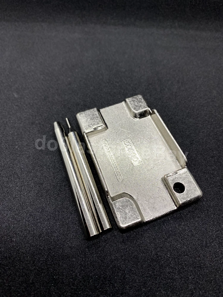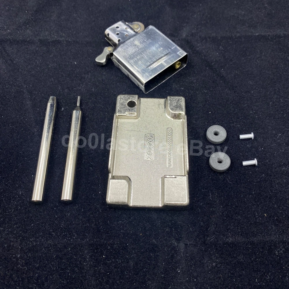 Product description: Specification: Condition: 100% Brand New Size: 65mm (Approximate) Weight: 76gm Material: High Quality Metal durable and easy to use For all Zippo, Zorro Lighters If you have any questions please feel free to contact us we have 24 hours customer service. Package Includes: 1 Fixed Base Plate + 1 punch for removing grind wheel +1pc Install Punch+2pc Steel Wheel + 2pc Rivets Item Photos:
