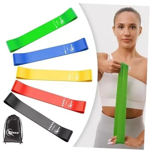 About this item Natural latex material: Made of strong and durable raw material to withstand pressure over time and to last for years. Superior Quality. All Our Exercise Resistance Bands Are Thoroughly Tested Before We Ship Them Out To You. This Ensures Your Bands Are Easy On Skin And Will Provide You With A Worry-Free Experience. Resistance bands 5-pack: This workout set for women includes 5 resistance bands for stretching and strength training. Everyone can find a suitable one for Yoga, physical therapy, and pilates. The bands allow you to mix and match to get your desired weight level—from 10 lbs up to 115 lbs when combined, suitable for someone just starting out or an experienced gym-goer. Pocket-sized portability: Training with bands has achieved the same results as free weights but with portability and low joint stress. Our set of resistance bands allows you to perform over 150 different exercises with a wide range of resistance/weight, allowing you to work any muscle group in your body in countless ways. Multi-purpose: Ideal for physical therapy, rehabilitation, pull-ups, stretching, strength training, powerlifting, and more. What you get: Five exercise bands with color-coded resistance levels, a portable travel carry bag, and an instruction guide.