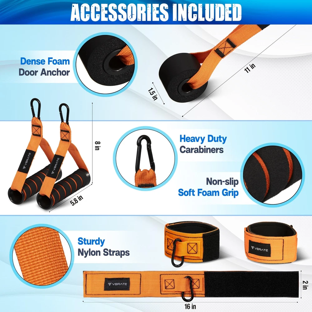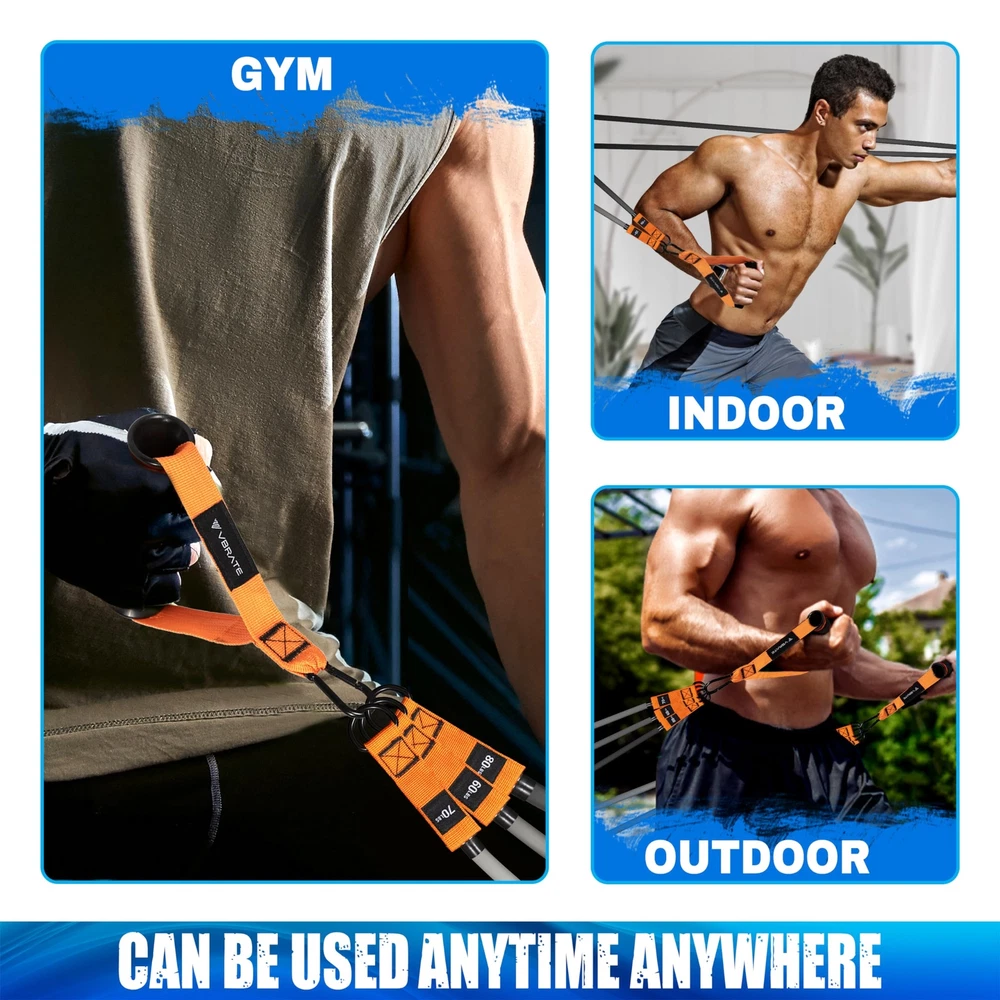 Ready to elevate your workout to new heights? Are you up for the challenge? You don't need to spend much money to buy expensive gym fitness equipment. Our strength bands set is just what you need for an improved training routine. MULTIPURPOSE EXERCISE BANDS – Create a perfect peach butt, groom leg lines, raise the hip curve, and local shaping loss of fat, arms, chest, abdomen, glutes, and legs thanks to these durable workout bands, perfect for activating your muscles before any heavy lifting. Designed for individuals ready to embrace the intensity and redefine their fitness limits, these resistance bands with handles are designed specifically for those who dare to push their limits, with five levels ranging from 40 lbs to 80 lbs. FOR MAXIMUM RESULTS– When it comes to activating your muscles, these exercise resistance bands can be a perfect alternative to lifting weights to stimulate your muscle growth without putting strain on your joints the way heavy weights can do. It is ideal for assisting with heavy resistance training, physiotherapy, muscle training, yoga, and Beach Body workouts. FOR BETTER LOWER BODY WORKOUTS -Not just heavy resistance bands, our gym workout set also comes with two ankle straps with door anchor which are easy to connect to your ankles with a pull cord on the D-ring. Now you can try some new exercises like enhancing ankle strength, leg thrusts, hip abduction & adduction, inner & outer thigh contractions, walking side steps, leg press, and have more fun than before! PACKAGE INCLUDES: 5 x Latex Resistance Bands for Customizable Intensity 2 x Ergonomic Handles for a Comfortable Grip 1 x Door Anchor for Versatile Exercise Options 2 x Ankle Straps for Targeted Muscle Engagement 1 x Portable Carrying Bag for on-the-go Fitness DON’T WAIT AND GET YOUR STRENGTH TRAINING EQUIPMENT SET TODAY! 💪 300LBS RESISTANCE BANDS SET – This isn't your average resistant bands for exercise, it's the new and improved 300lbs resistance band set, with a maximum tension of 300lbs and five distinct resistance levels, ranging from 40lbs to an impressive 80lbs, making them adaptable for users of all strength levels of weight band set. 💪 HIGH-QUALITY GYM ACCESSORIES - The perfect home gym exercise equipment for those seeking an unparalleled challenge in their workout routine. Compared with regular workout bands, our resistance bands for working out are made from 100% latex, making them more elastic, safe and reliable to withstand intense daily exercise sessions. 💪 HEAVY-DUTY RESISTANCE HANDLES - Each workout set includes two durable handles made of thickened foam material, reinforced stitching and steel D-ring, that provide a comfortable grip for various exercises, that can withstand over 300 pounds, ensuring a seamless and effective workout experience. Empower your men and women training with our versatile exercise band set, tailored for training needs and boasting a remarkable 300lbs resistance band suit. Elevate your workouts to new heights 💪 BUILD YOUR LOWER BODY MUSCLES -Transform your door into personal gym with the door anchor and 2 ankle straps. Just fasten the gym ankle straps to your legs, connect them on the door anchor, and start improving your range of motion and balance, calf, leg and lower body, 💪 IMPROVED FULL BODY EXERCISES –Workout your upper and lower body and perform different types of exercise, like toning your glutes, abs, biceps, triceps, legs and knees, with the exercising bands for strength training which are lightweight and easy to packed into the carrying bag, so you can take them anywhere you go!