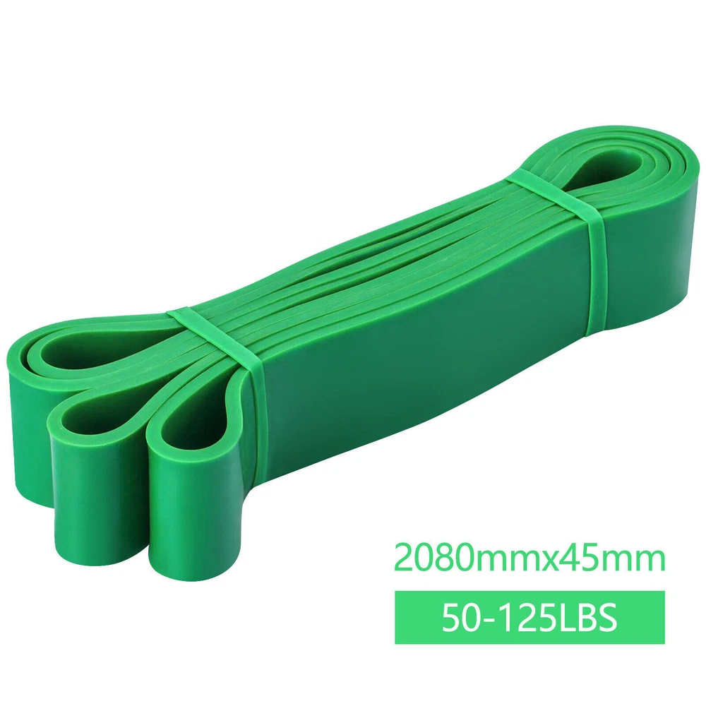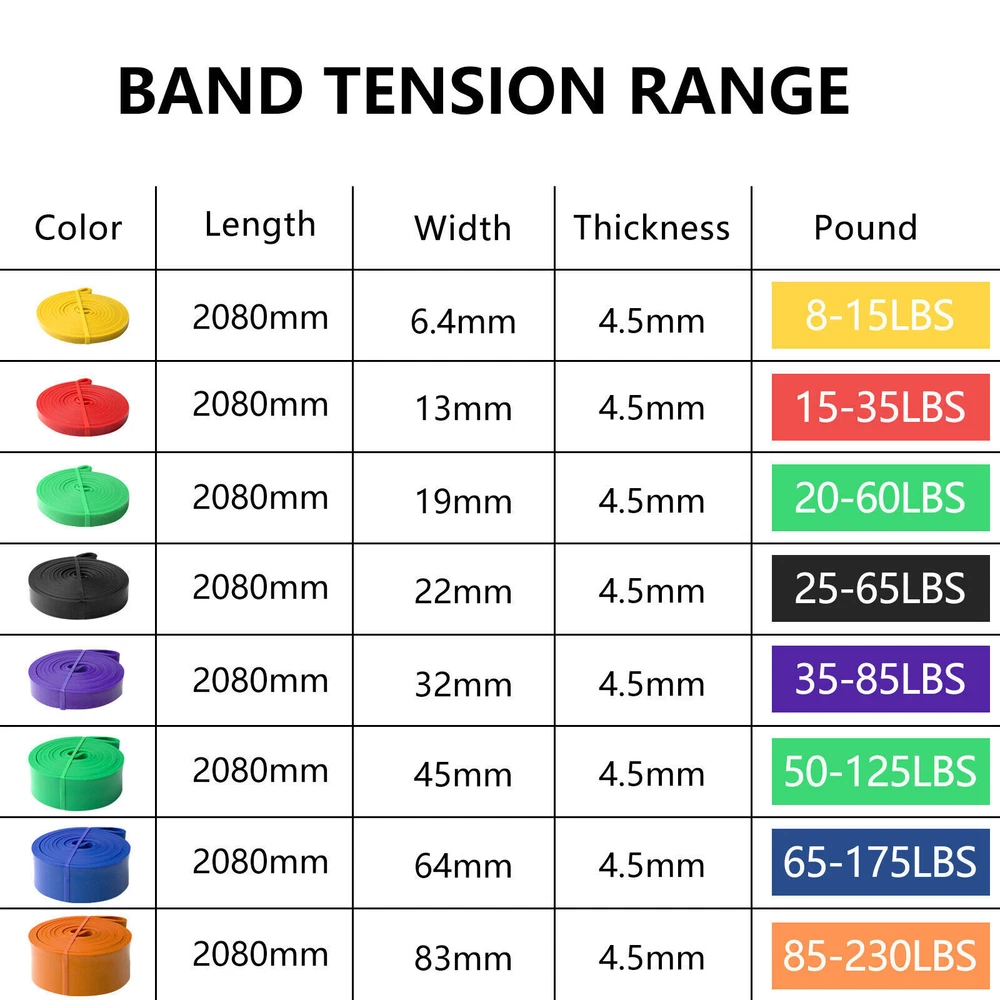 This resistance bands exercise kit is made of professional quality natural rubber latex. They are very tight, tough, not cheap PVC or plastic material. If you're tired of those bulky equipment machines or just don't have the time to go to the gym, you can do everything you want with this band set. Feature: * Made from 100% pure natural latex. * 8 striking colors availble, heavy duty material, no smell * Tough, long life span, durable to use * By using it, you can engage in a Varity of resistance training, such as CrossFit, Yoga, Pull Ups, Power Lifting, Stretching and other exercises. * Suitability: For athletes, office staff, sports fans and most body builders. * MULTIPLE CHOICE--Each strap has a different strength so that you can increase the intensity of your workout gradually. Specification: Color Length Width Thickness Resistance Yellow 81.9 inch 0.25 inch 0.18 inch 8-15LBS Red 81.9 inch 0.51 inch 0.18 inch 15-35LBS Green 81.9 inch 0.75 inch 0.18 inch 20-60LBS Black 81.9 inch 0.87 inch 0.18 inch 25-65LBS Purple 81.9 inch 1.26 inch 0.18 inch 35-85LBS Green 81.9 inch 1.78 inch 0.18 inch 50-125LBS Blue 81.9 inch 2.52 inch 0.18 inch 65-175LBS Orange 81.9 inch 3.27 inch 0.18 inch 85-230LBS Package included: 1 x Resistance band
