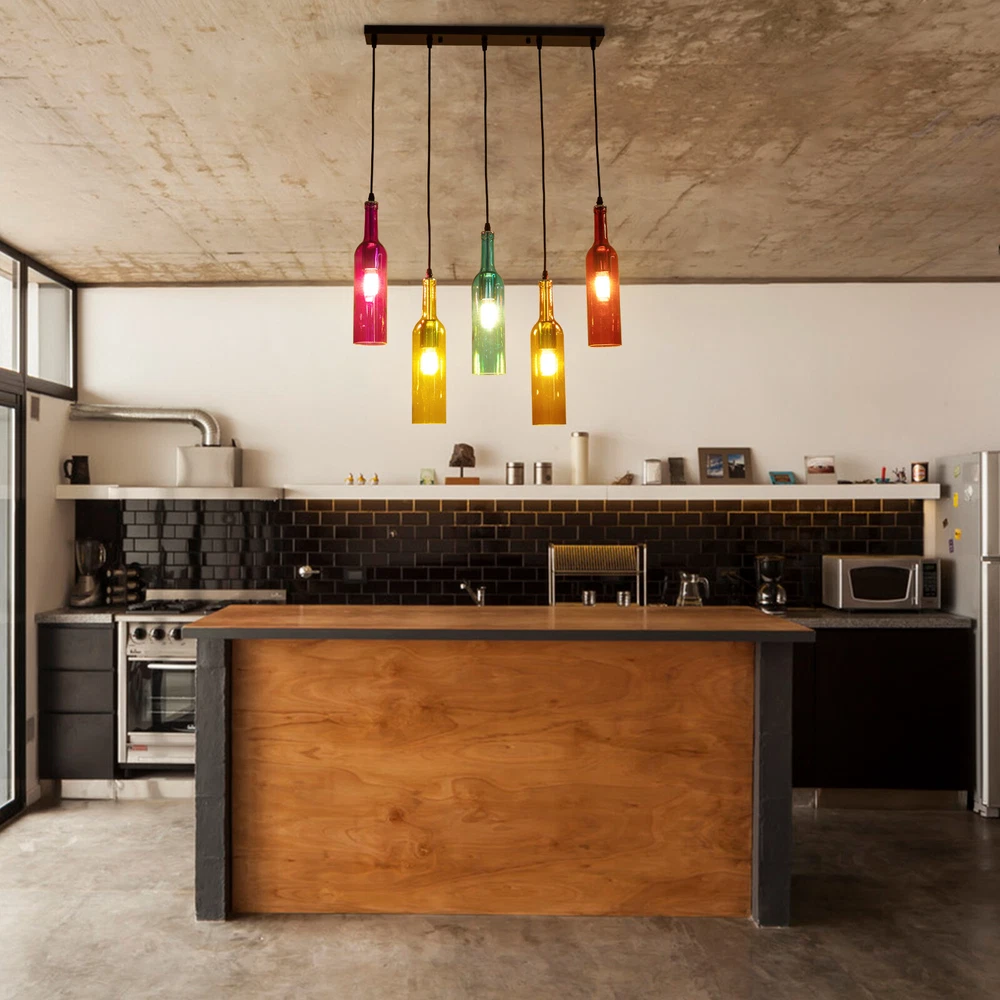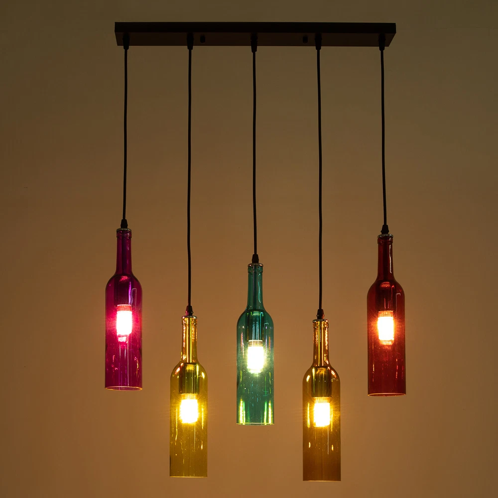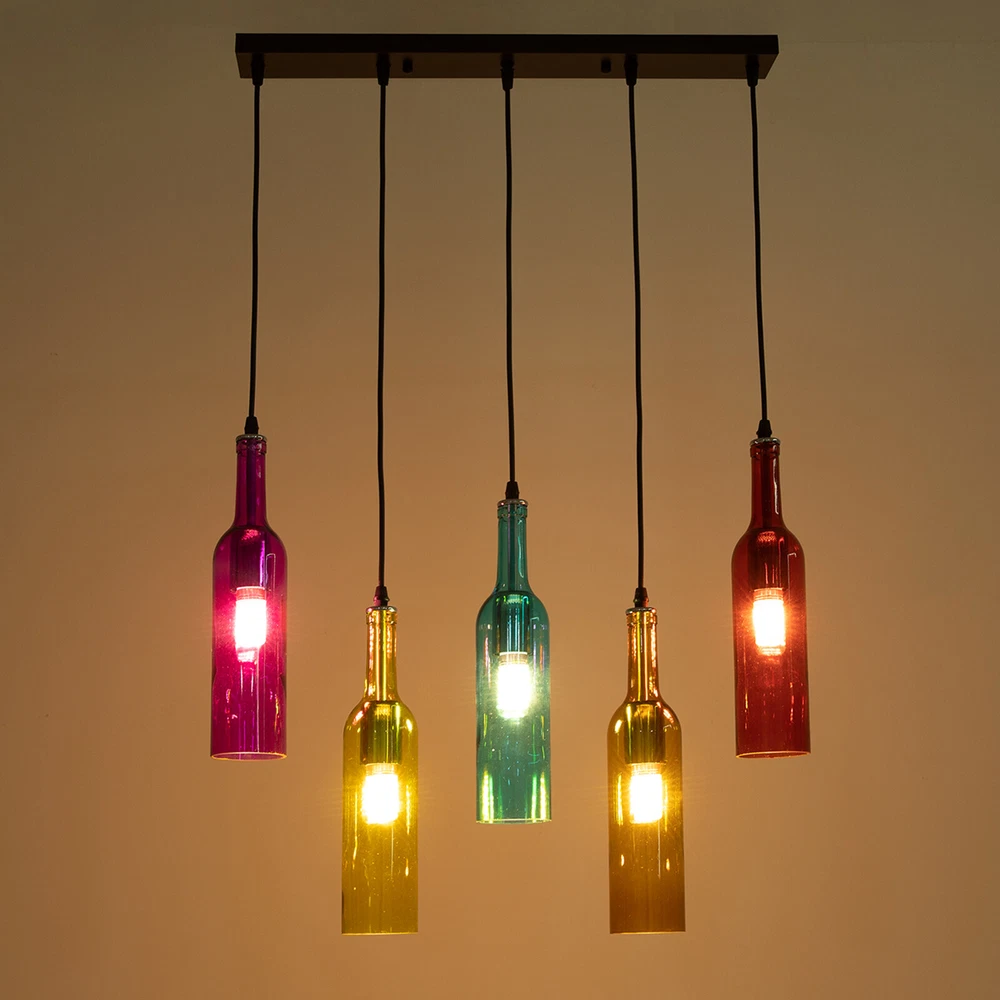 Retro 5 Wine Bottle Pendant Lamp Restaurant Bar Ceiling Hanging Light Fixture