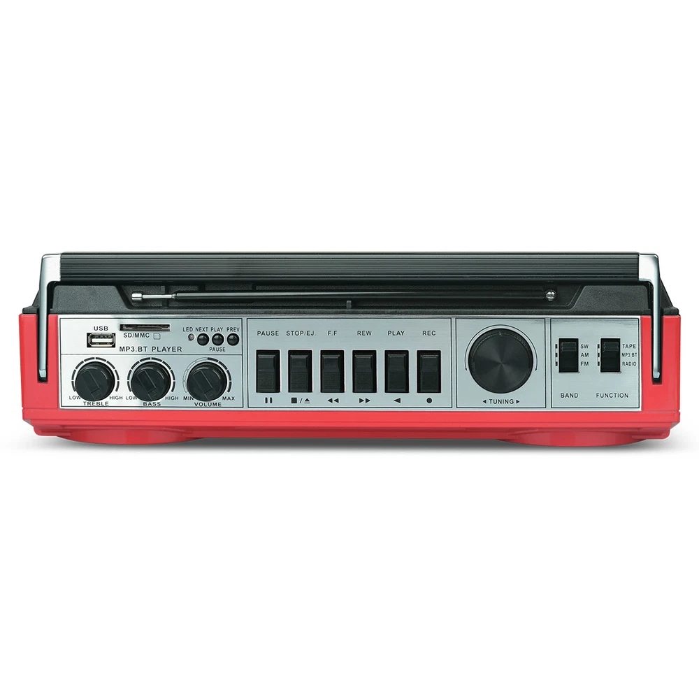 Retro Radio Cassette Radio Player MP3 & Recorder Bluetooth Speaker AM/FM/SW/USB SPECIFICATIONS: Material: ABS Color: Black Bluetooth Name: RXC-25BT AC power supply: 120V DC power supply: 6V (4xD battery) Power output: 10 RMS watts Function: Bluetooth, USB, SD, FM, AM, SW or AUX mode Box recorder/player with built-in condenser microphone Equipped with capacitive microphone FF/REW/REC function Size: 14 x 5.5 x 4.5 inches Weight: 3.89 pounds PACKAGE INCLUDES: 1X Retrobox Cassette Player and Bluetooth Speaker 1X AC Cable Payment Shipping Return Feedback Question Payment We accept payment via Paypal ONLY. Immediate payment is required & Shipping will be arranged only your payment is cleared. Shipping Same business day dispatch if paid by 4 pm EST(1 pm PDT). No shipping on weekend or Public Holidays & No responsibility for any customs duty. Return We stand behind our products. Items can be returned for exchange or full refund within 60 days from the date you receive your item. Return shipping is the responsibility of buyer unless the return is a result of our mistake (i.e., your receive the wrong item or damaged item). We will pay for shipping replacement back to you if an exchange is requested. If you want to initiate a return, simply clicks "Return this item" next to the transaction in My eBay, chooses a reason, and prints a return shipping label and packing slip. We’re automatically notified. Feedback Please leave us a FIVE star and POSITIVE feedback if you are satisfied with our product and service. Neutral or negative feedback will not solve problems happily. We believe communication will fix problems and hope every customer can have a good purchasing experience. Question All ebay message will be responded within 1 business day or less, except weekends and holiday!