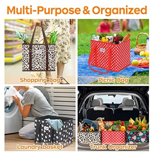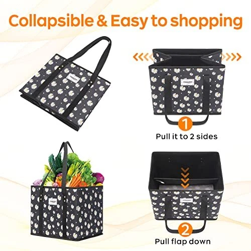 Mainul Extension Reusable Grocery Bags, Shopping Cart Bag,Heavy Duty,Hard Bottom Foldable Trunk Organizer,Set of 3 (Daisy) Non-woven,Polyester Fabric Imported LARGE CAPACITY:Large reusable grocery bags have plenty of space,you can fit in the cart and put shopping things separately to the three bags.Grocery bags reusable shopping bags can be filled with what you need for the week,such as fruits and veggies,cans,bread,non food items,etc. REUSABLE & DURABLE:MVSCOCEAN heavy duty reusable grocery bags are made of high quality polyester fabric,which is more gravity-bearing and durable than non-woven fabric.Reusable grocery totes can hold up to 40 lbs,it's sturdy and durable. EASY TO STORAGE AND FOLD:Spacious rectangular opening for easy to fold and store,reusable grocery bags foldable work great for getting groceries without using plastic sacks. They can fold up to make shopping easy and convenient. MULTI-PURPOSE & ORGANIZED:Cute reusable grocery bags can be used as shopping bag,picnic bag,laundry basket,trunk organizer,storage box to organize toys,books,all kinds groceries. ECO FRIENDLY:Grocery totes can be reused and recycled many times, it helps to reduce the use of plastic and make our environment more eco friendly. Free Shipping We offer FREE shipping on all orders! We ship within 5 business days, usually sooner. We use shipping services like: ePacket, USPS, China Registered Air Mail Post for faster shipping: UPS, FedEx, DHL (at extra cost) Please contact us for more details about shipping services that we provide. Return You can return a product for up to 30 or 60 days (Mentioned in the product listing) from the date you purchased it. Any product you return must be in the same condition you received it and in the original packaging. Please keep the receipt. Payment We only accept payment from eBay managed payments. Please pay as soon as possible after winning an auction, as that will allow us to post your item to you sooner! PS: We only ship orders after the payment complete. Customer satisfaction is very important to us. If you have any problem with your order, please contact us and we will do our best to make you satisfied. Please visit our eBay store to check out other items for sale! Thank you for your visite to our store.