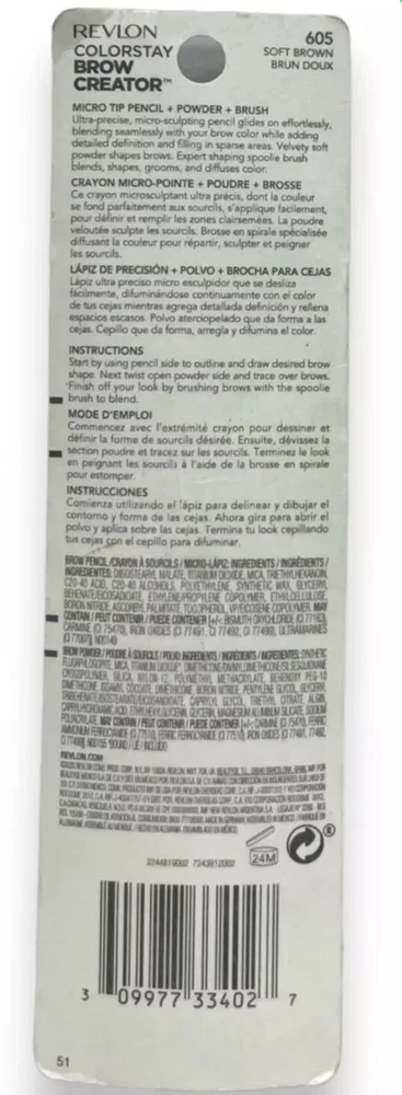 Revlon Colorstay Eyebrow Pencil/Powder Longwearing Precision Tip 605 Soft Brown.