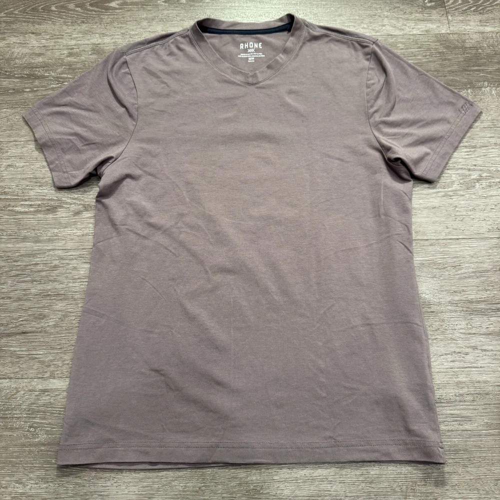 Pattern: Solid Accents: Embroidered, Logo Neckline: V-Neck Performance/Activity: CrossFit, Cross Training, Golf, Gym & Training, Hiking, Yoga Size Type: Regular Personalize: No Fit: Athletic Size: M Fabric Type: Knit Department: Men Fabric Wash: Medium Sleeve Length: Short Sleeve Features: Stretch Brand: Rhone Color: Gray Sleeve Type: Casual Sleeve Type: T-Shirt Closure: Pullover Compression Level: Mild Occasion: Activewear, Business, Casual Material: Polyester, Spandex Garment Care: Machine Washable Style: Pullover