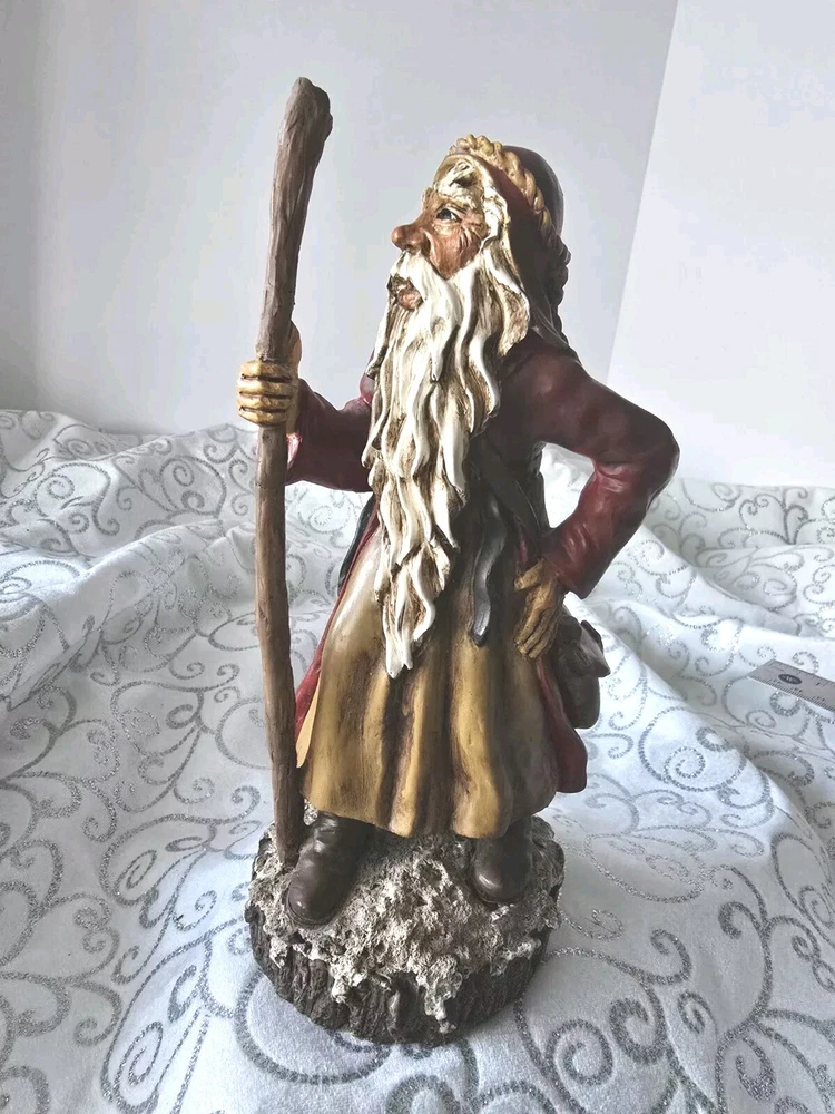 This beautiful sculpture titled "Wisdom" depicts an old man with a wise look on his face. The statue stands 9 inches tall and is made of plastic. It features intricate details and is artist signed by Rick J. Rowley. The sculpture has a abstract style and represents the culture of "Lost Woodsman". It is a perfect addition to any art collection.