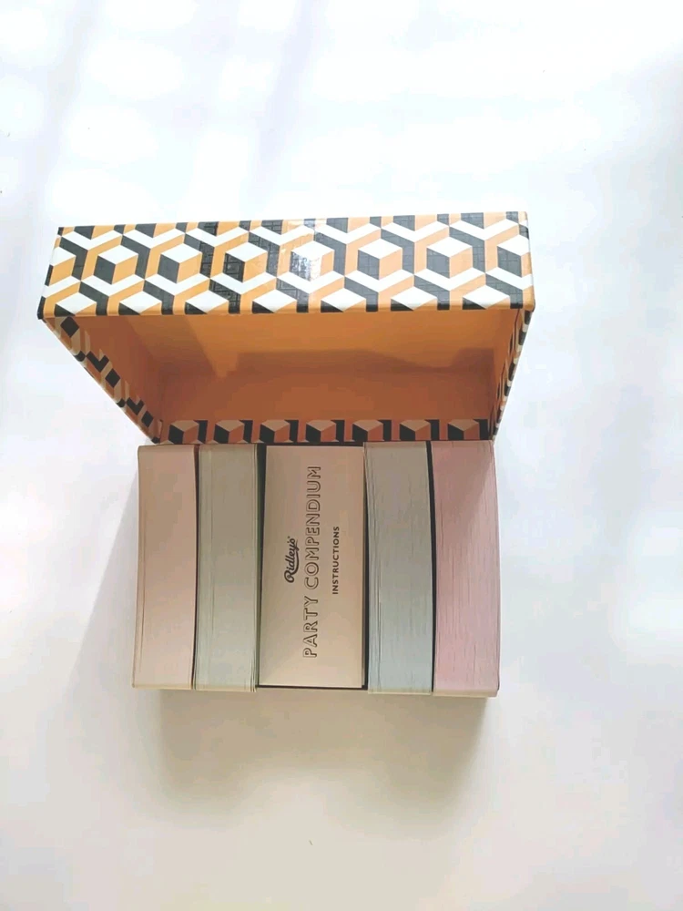 Get ready for a night of laughter and fun with Ridley's Game Room Party Compendium! This classic party game set includes a variety of games that are perfect for any occasion. Whether you're hosting a birthday party or a game night with friends, this set is sure to provide hours of entertainment. With games like Charades, Name Game, and Quiz, there's something for everyone to enjoy. The cards are made from high-quality materials and feature vibrant colors that make them look great on any tabletop. So why wait? Order your copy of Ridley's Game Room Party Compendium today and get ready to party like a pro!
