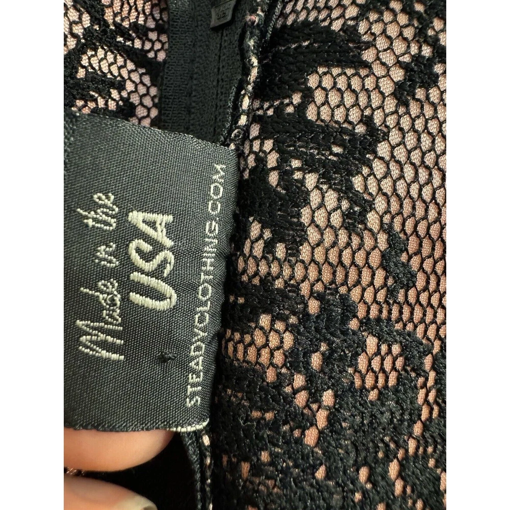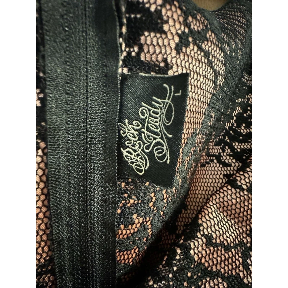 Rock Steady Dress Large Rockabilly Pinup 40s Glam Black Lace Blush Pink. Condition is Pre-owned, but very good. Top to bottom-41.5” Pit to pit-16”