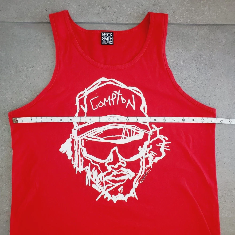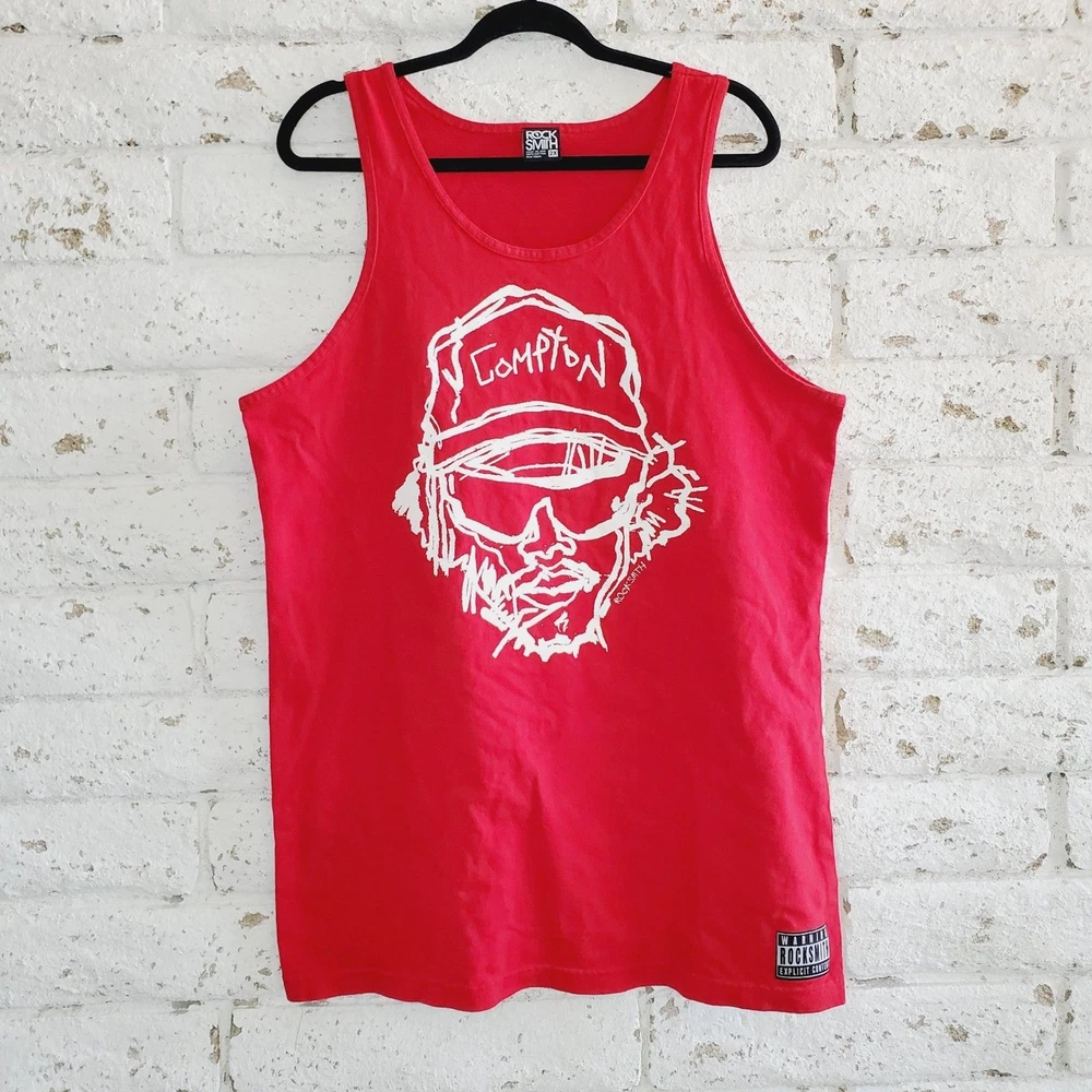 RockSmith Compton Red Tank Top Streetwear Graphic Shirt Mens SZ 2X In great gently used condition! minor fading overall no holes, rips, tears or weird smells = priceless (SEE PICS AS PART OF MY DESCRIPTION) *mens summer tank top *mens red tops *mens graphic tank tops *streetwear *Compton shirt